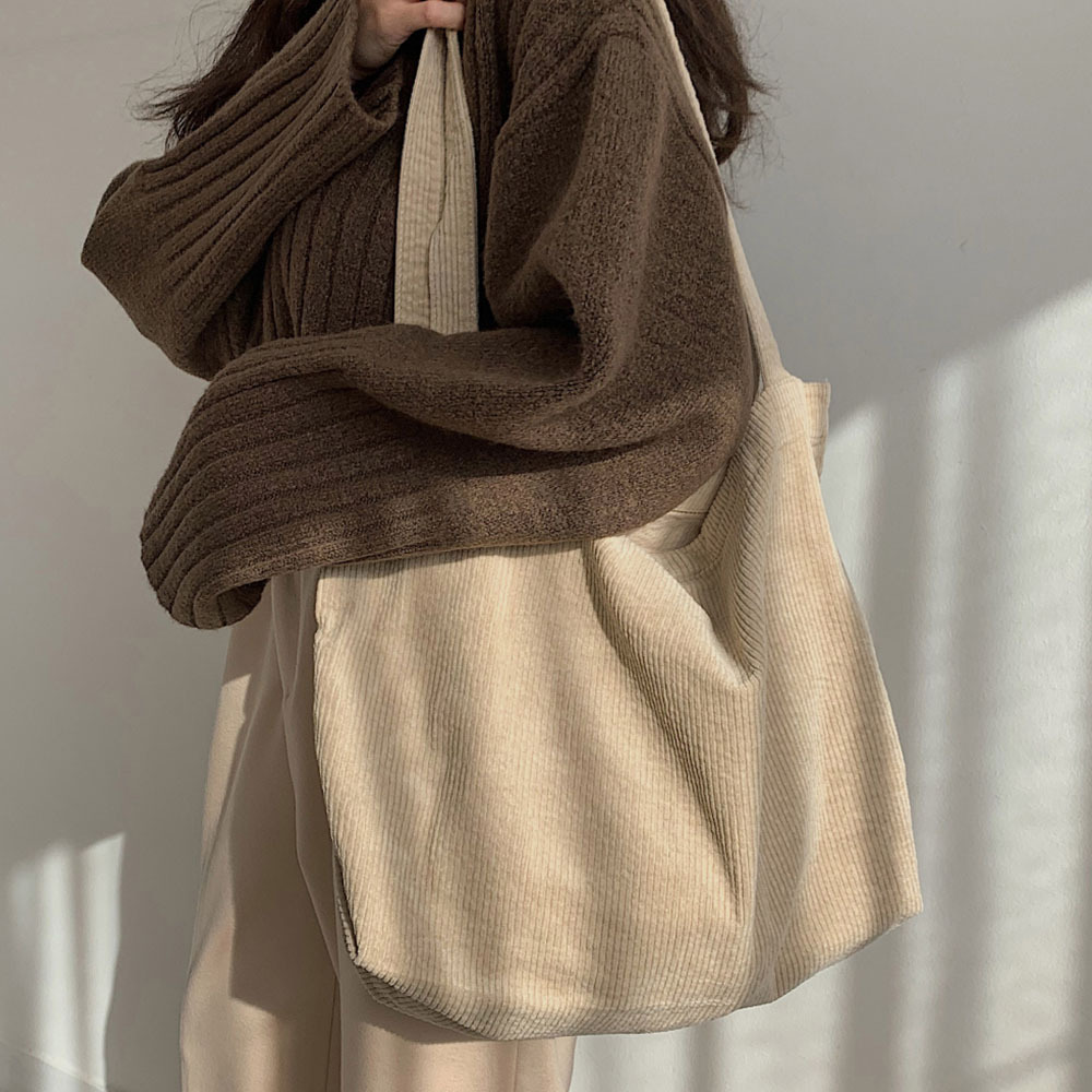 다목적 대용량 쇼핑백 캐주얼 문학 세탁 코듀로이 심플 레트로 여성용 숄더백의 한국어 버전