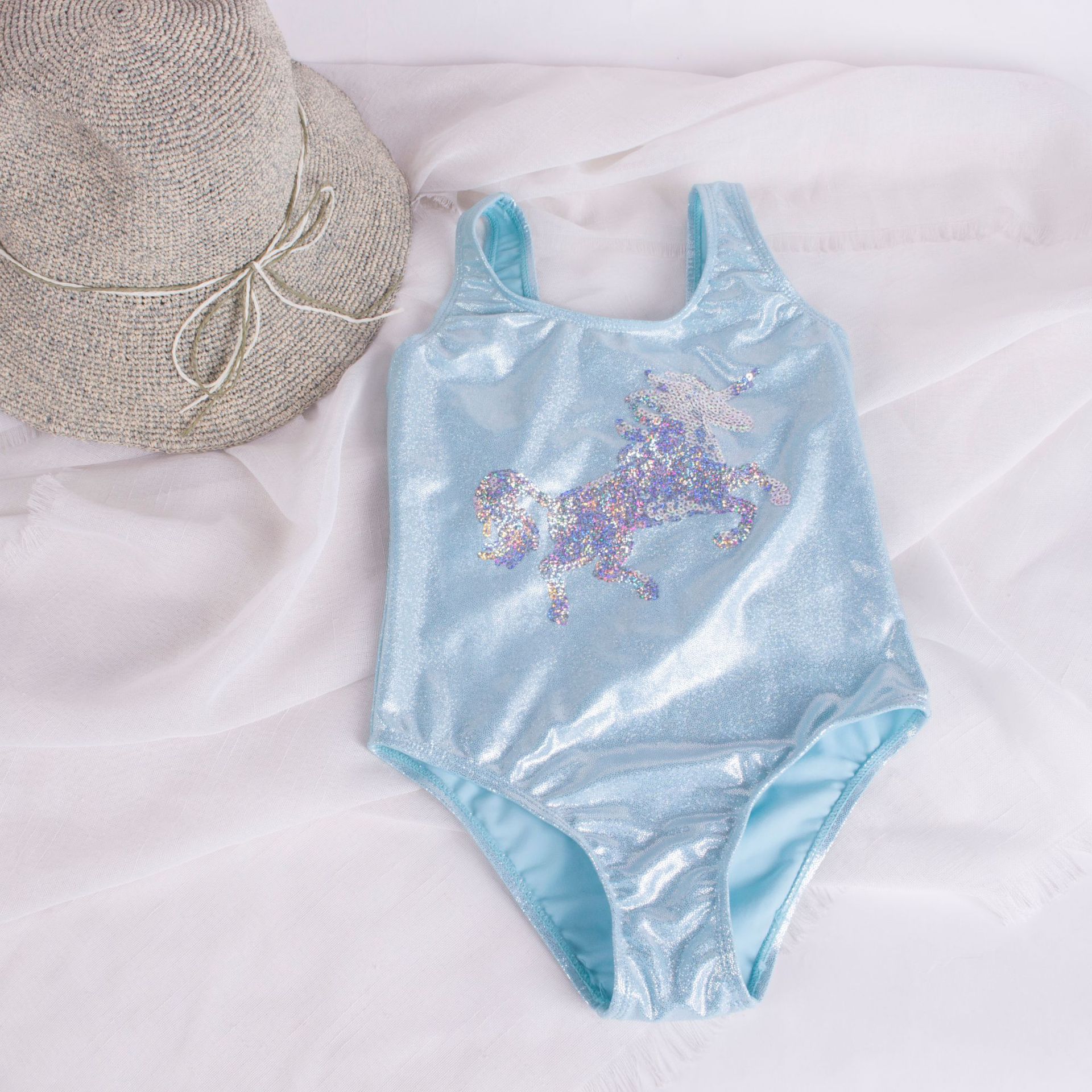 2021 신상품 스팽글 자수 여아 원피스 수영복 유니콘 브론징 어린이 수영복 해외 무역 수영복 여성용 22