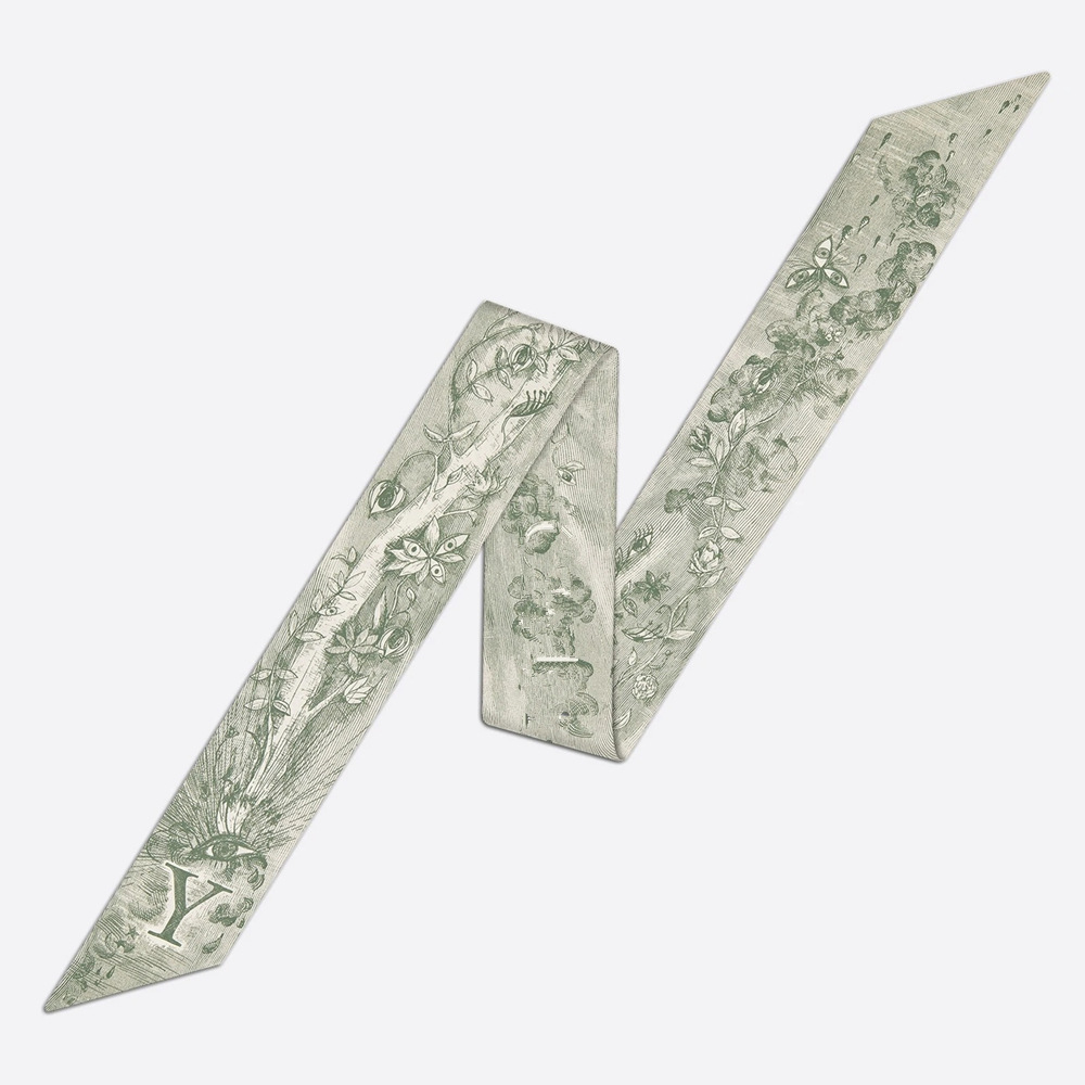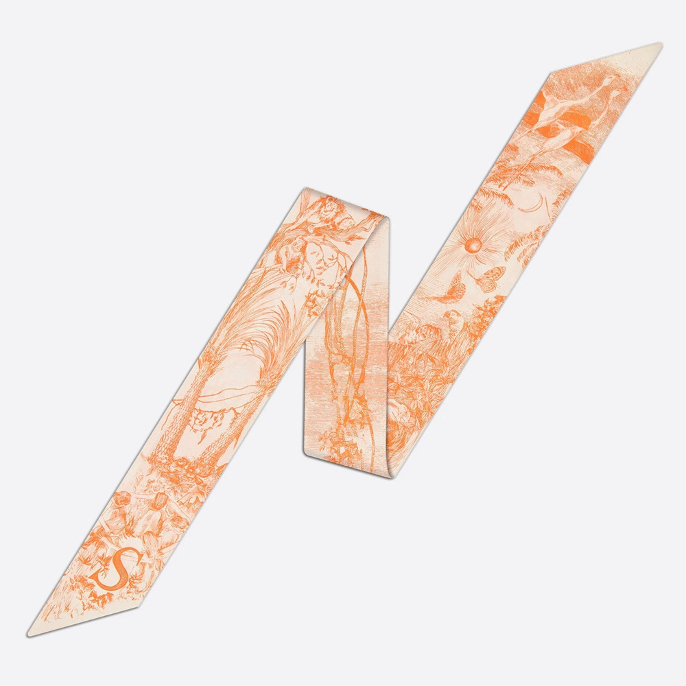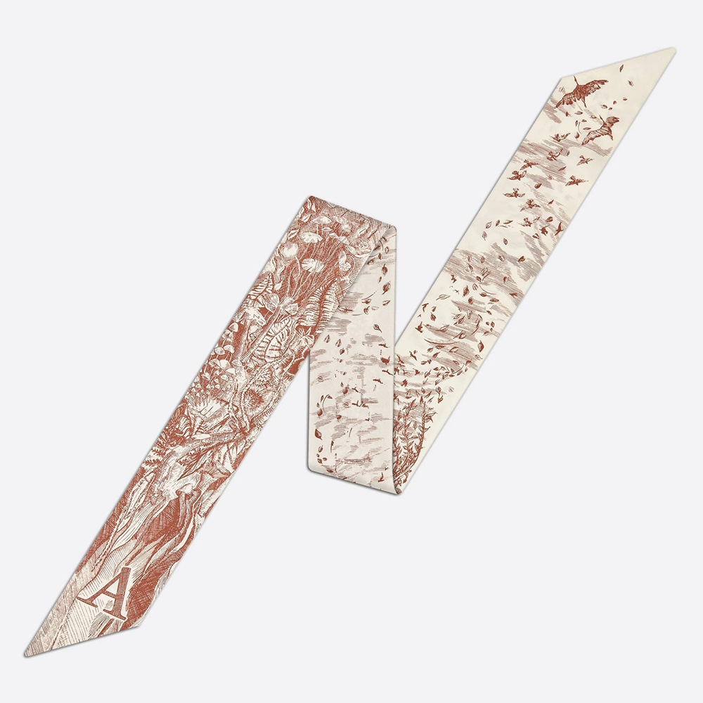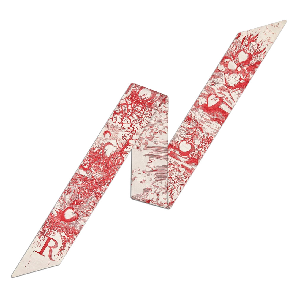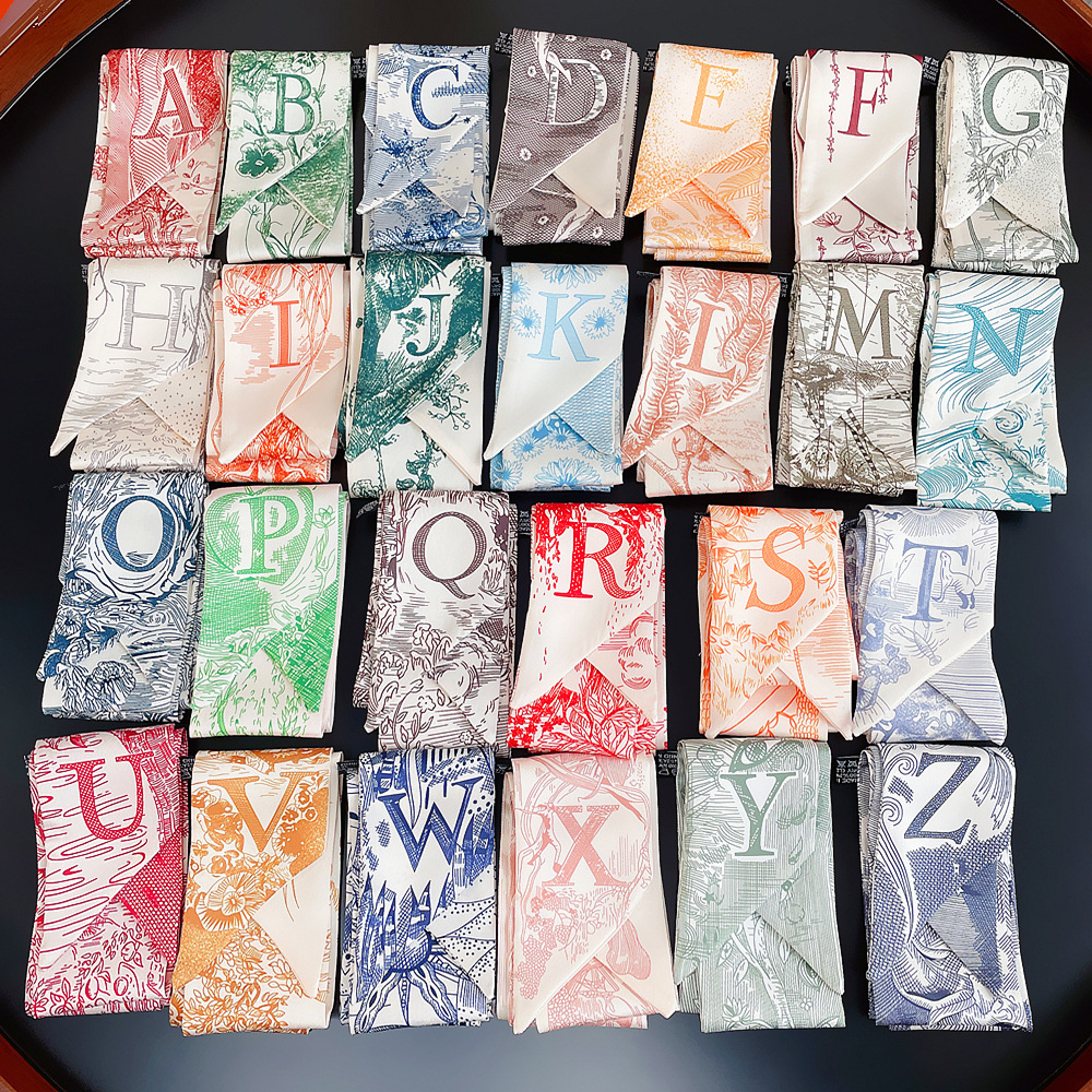 봄 신작 타로 카드 손으로 그린 꽃과 새 식물 26 글자 풀 컬러 여성용 실크 스카프 묶인 가방 작은 리본 스카프스토어 가기