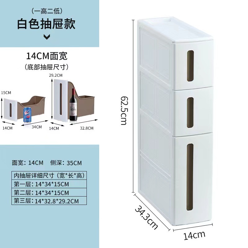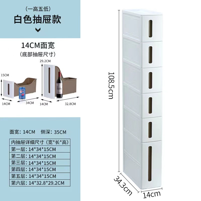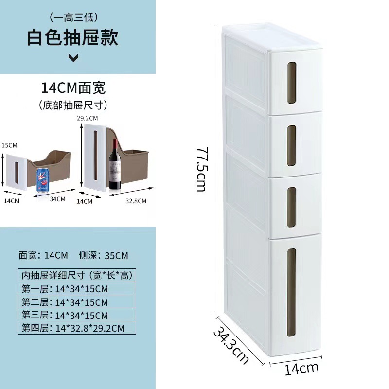14cm 서랍형 틈새 수납장 주방 수납장 욕실 옷 틈새 수납장 플라스틱 바퀴 달린 캐비닛