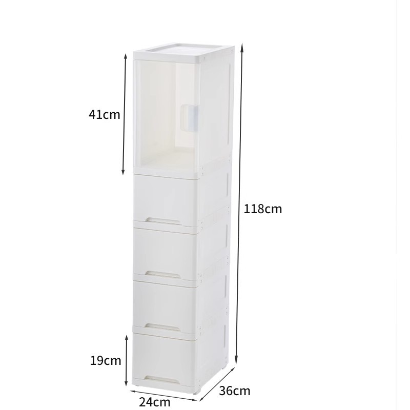 • 폭 19.5cm 흰색 5단(투명 흰색 서랍)