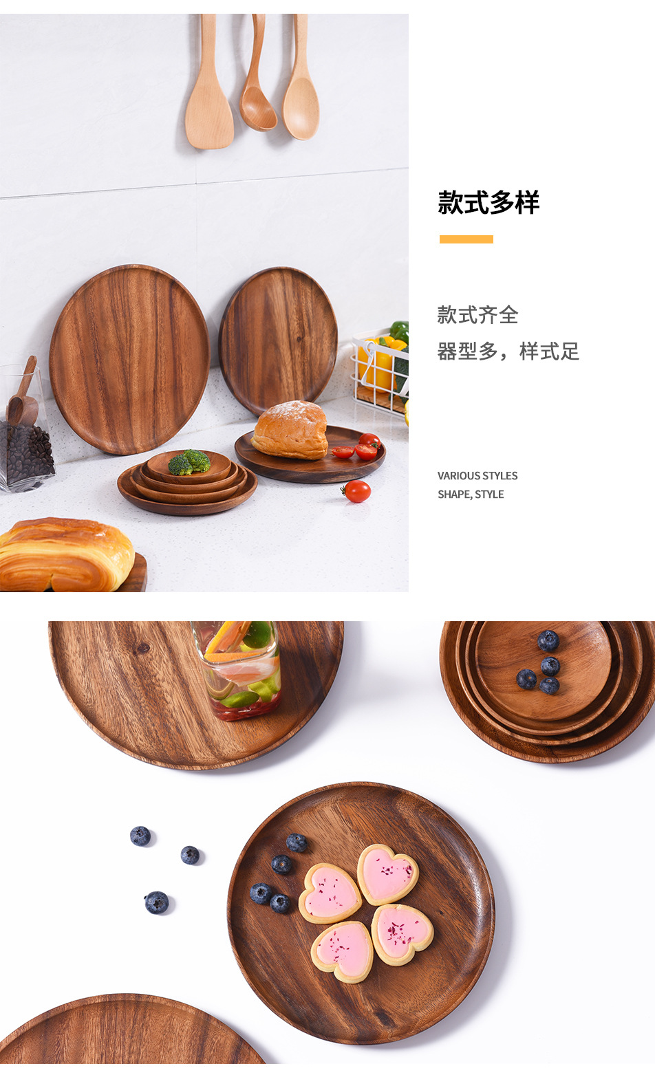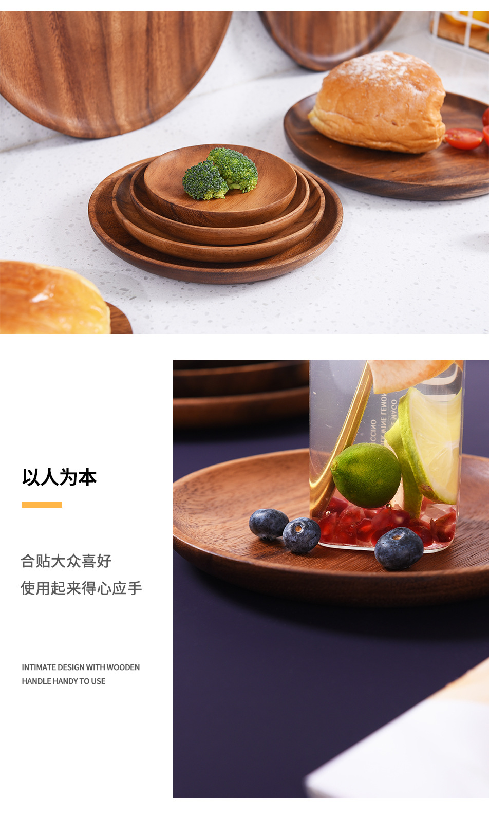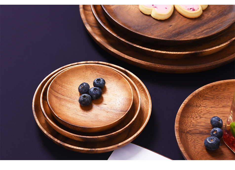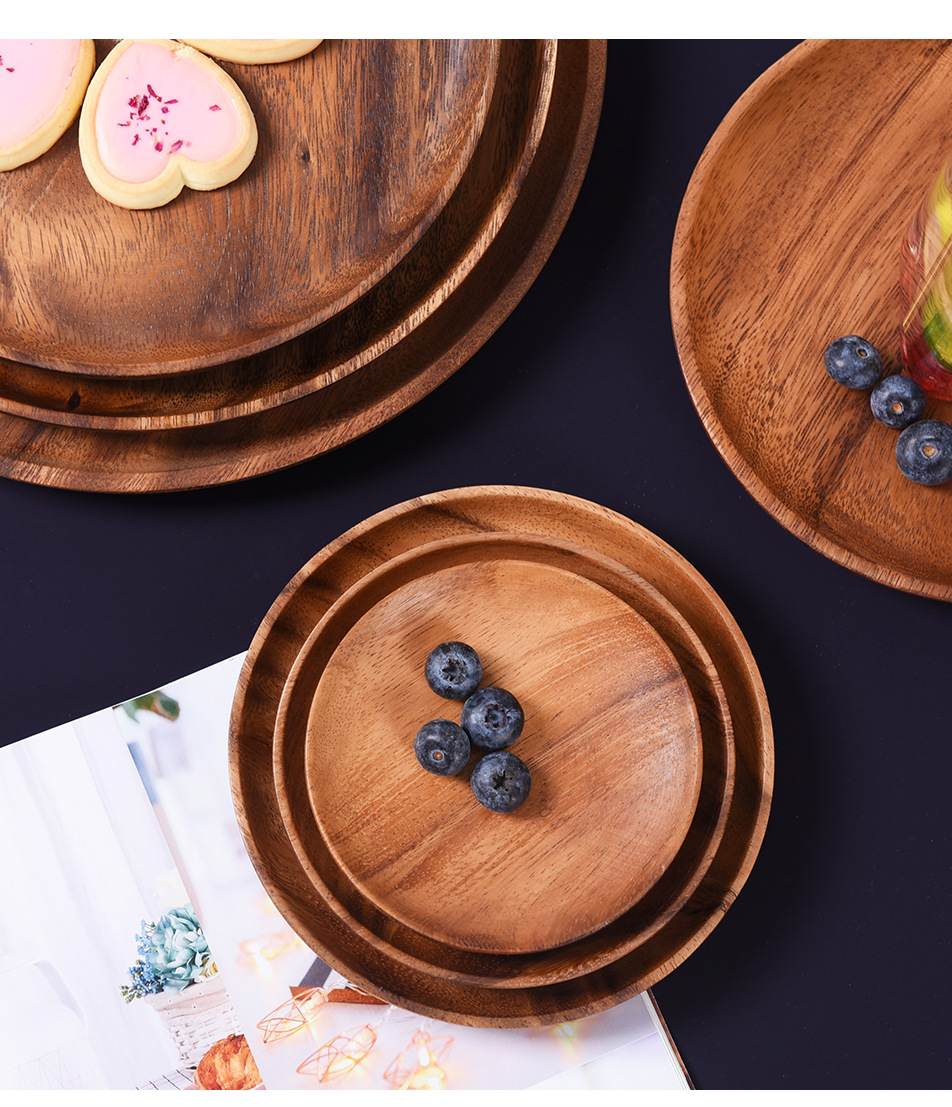 아카시아 나무 단단한 나무 접시 간단한 나무 접시 가정 라운드 나무 과일 접시 간식 저장 접시 세트 도매스토어 가기