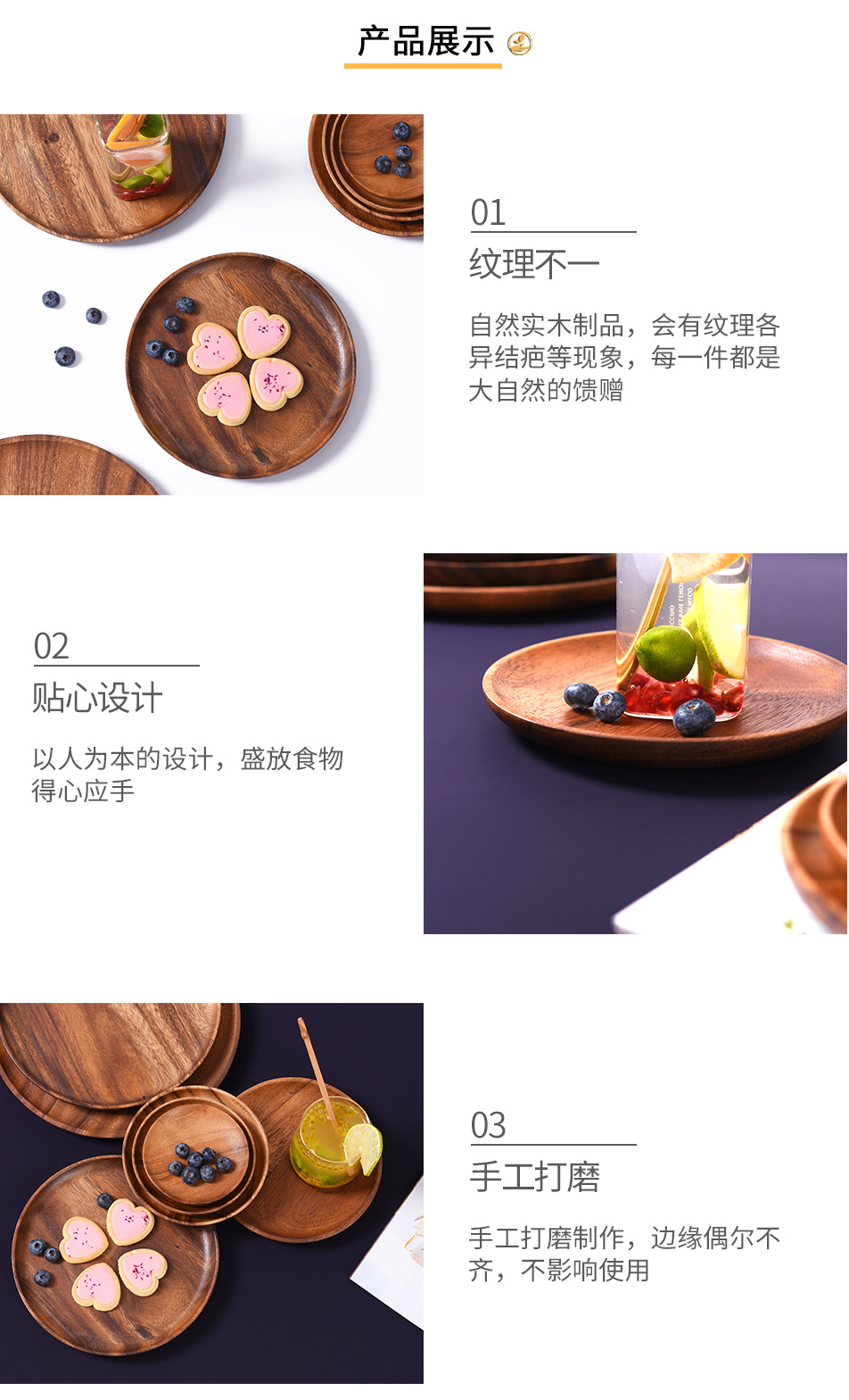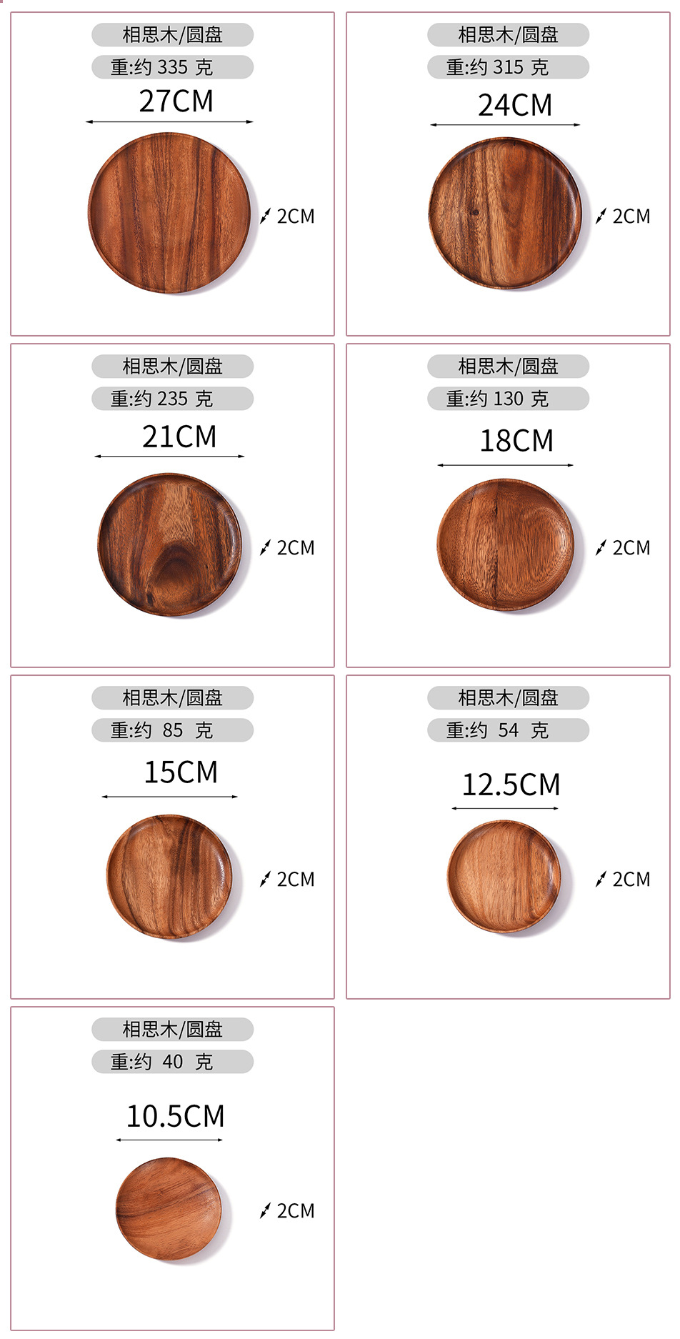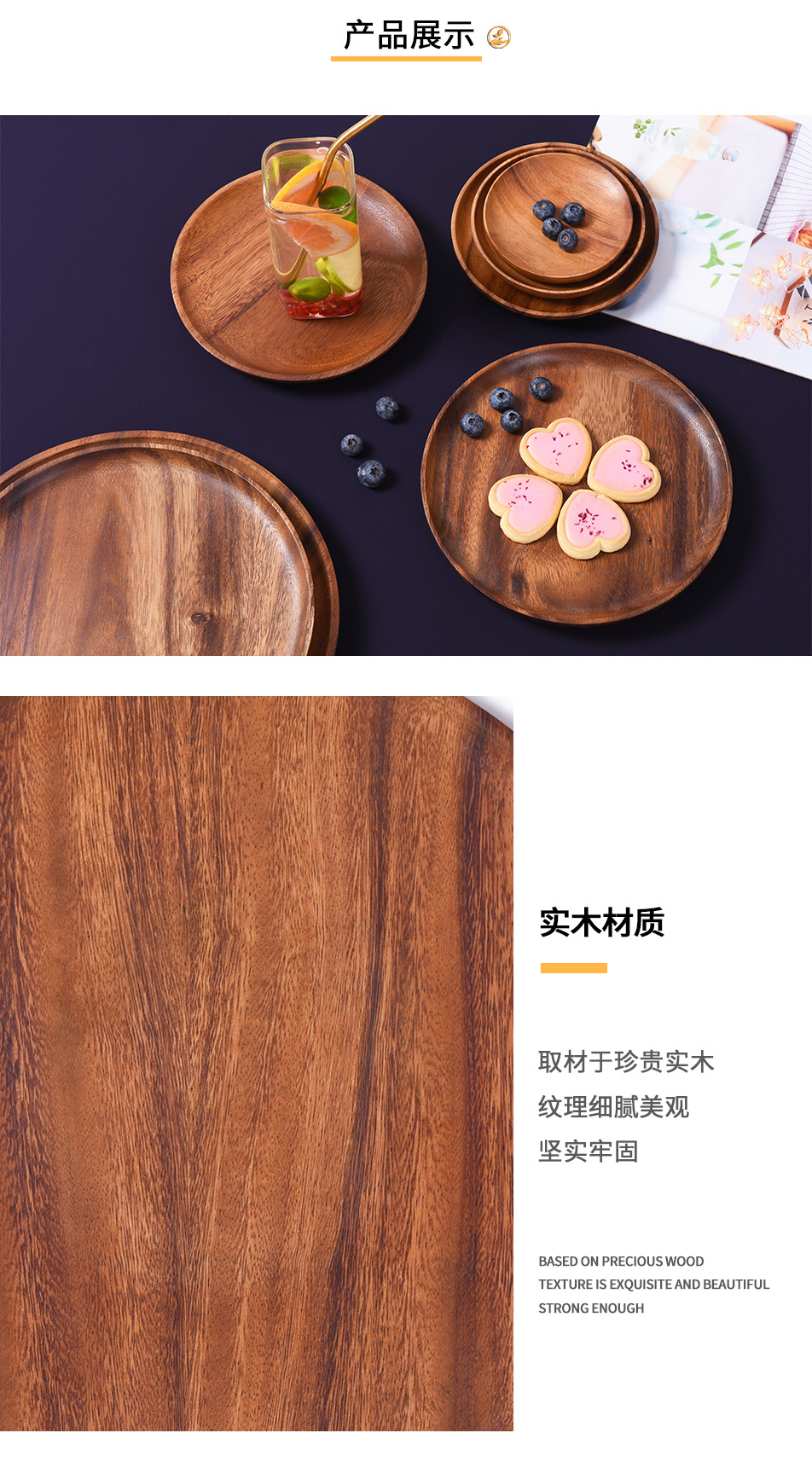 아카시아 나무 단단한 나무 접시 간단한 나무 접시 가정 라운드 나무 과일 접시 간식 저장 접시 세트 도매스토어 가기