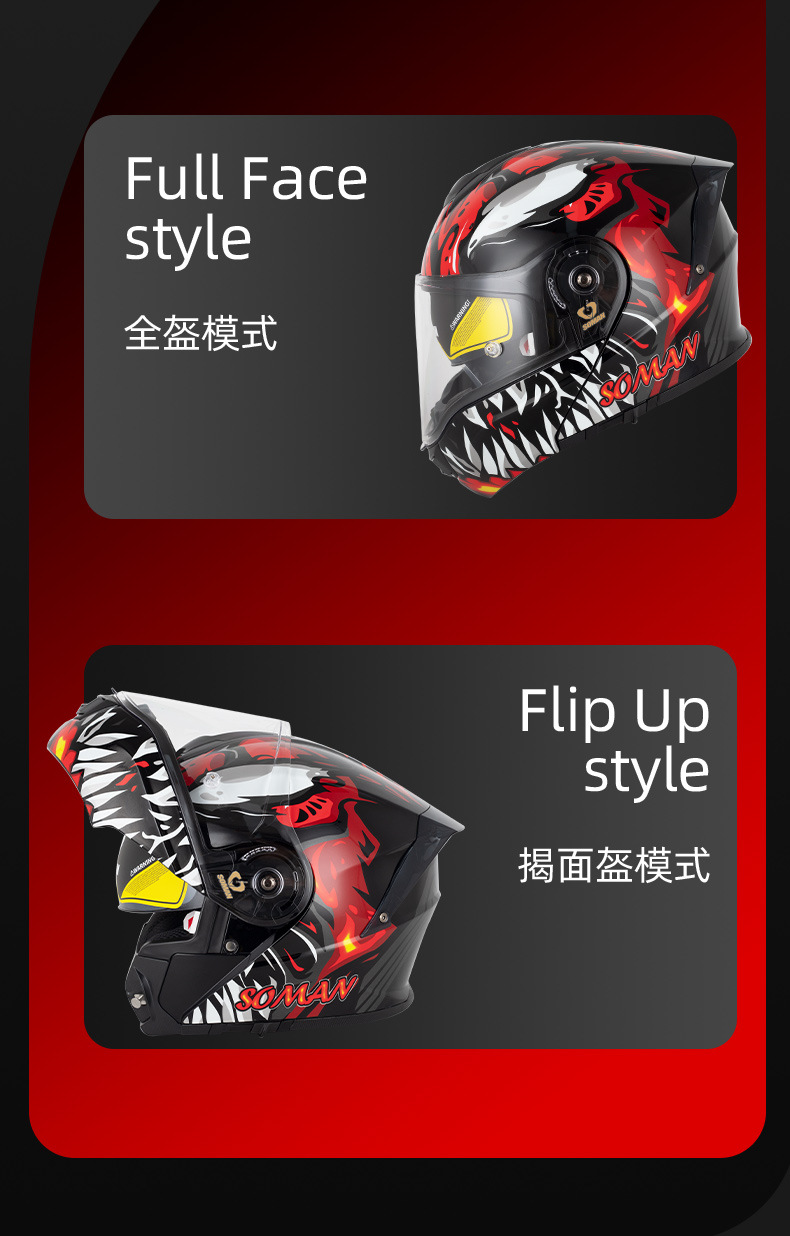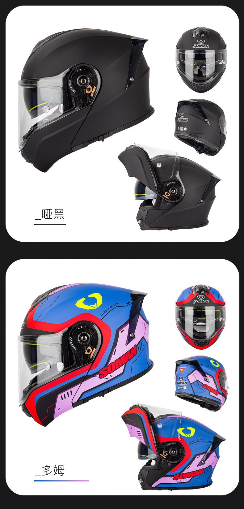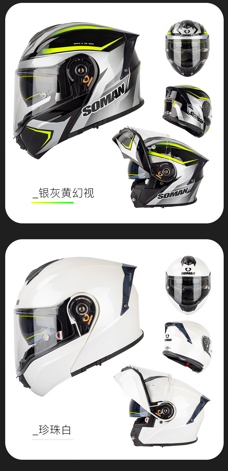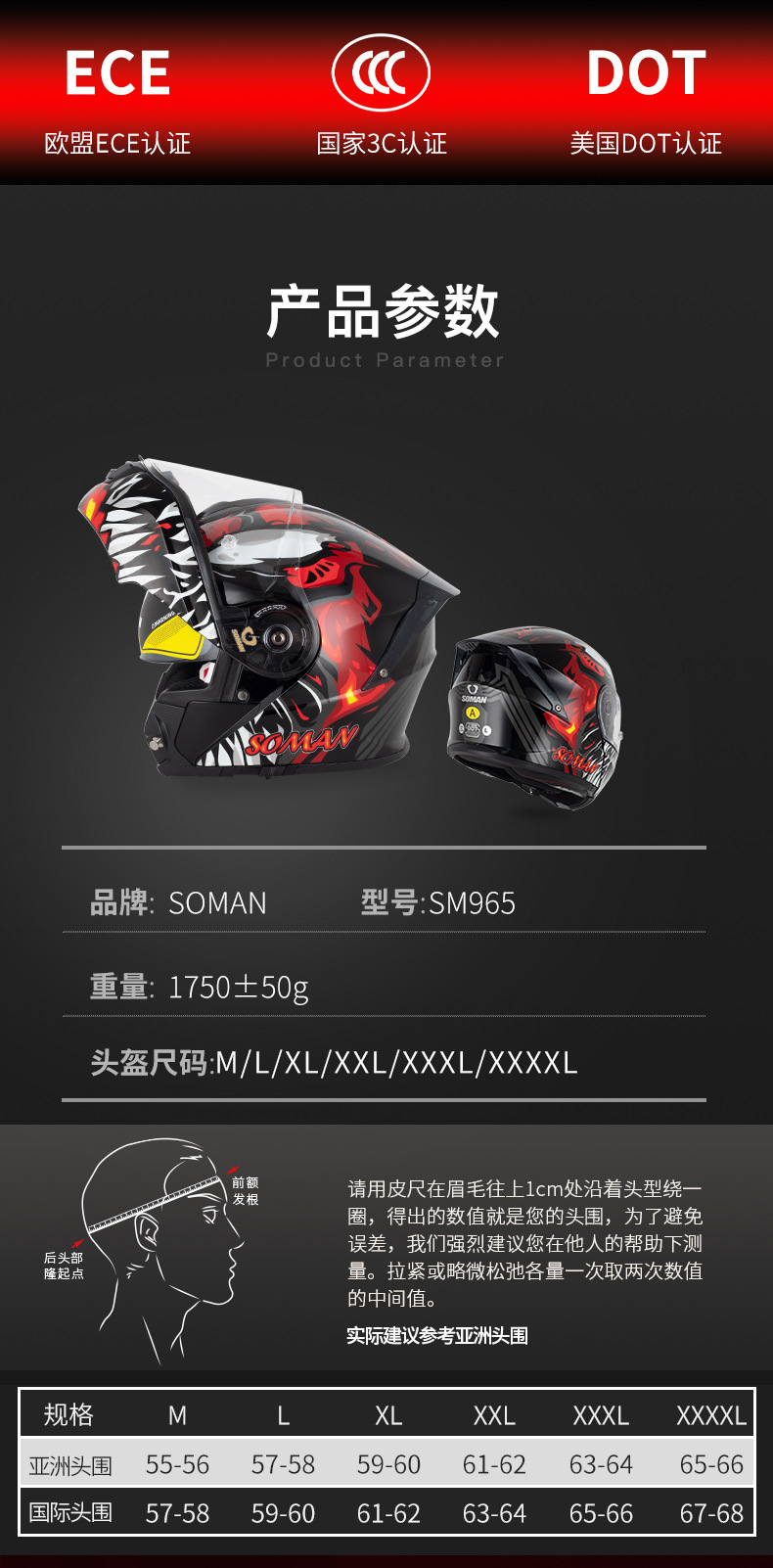 뉴 SOMAN 오토바이 레이싱 헬멧 더블 렌즈 노출 헬멧 라이딩 안전 헬멧 사계절 오토바이 큰머리 둘레 965