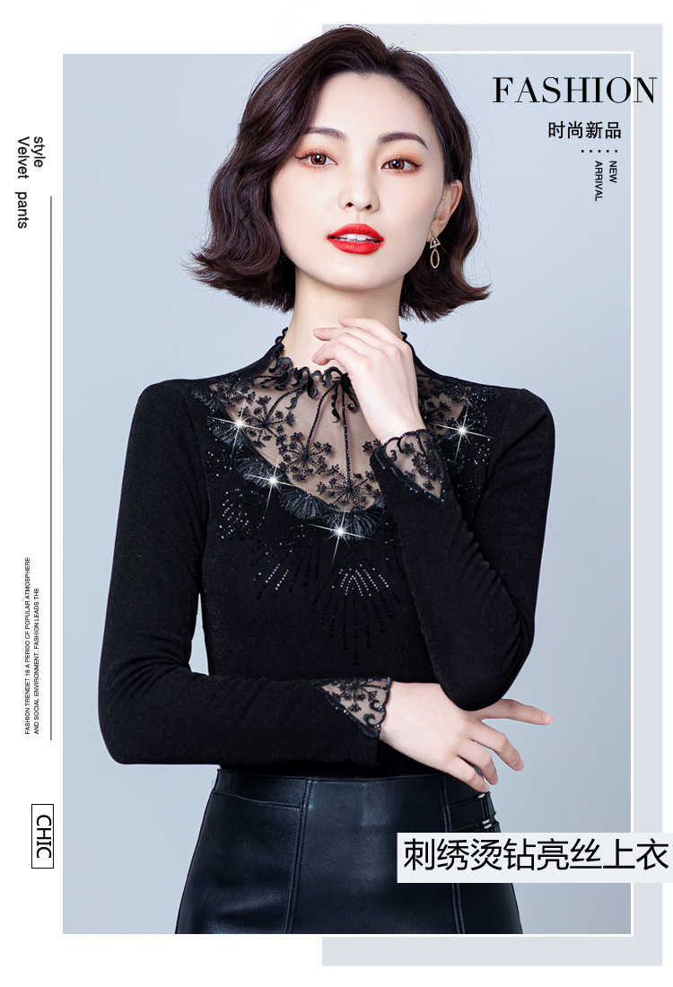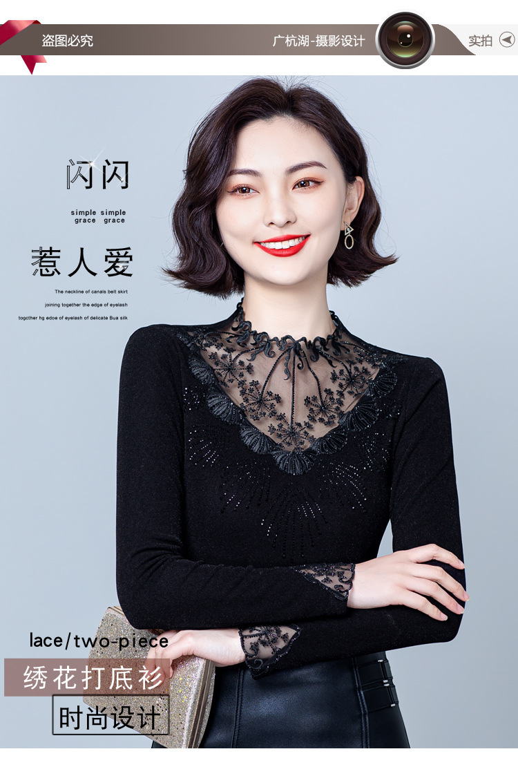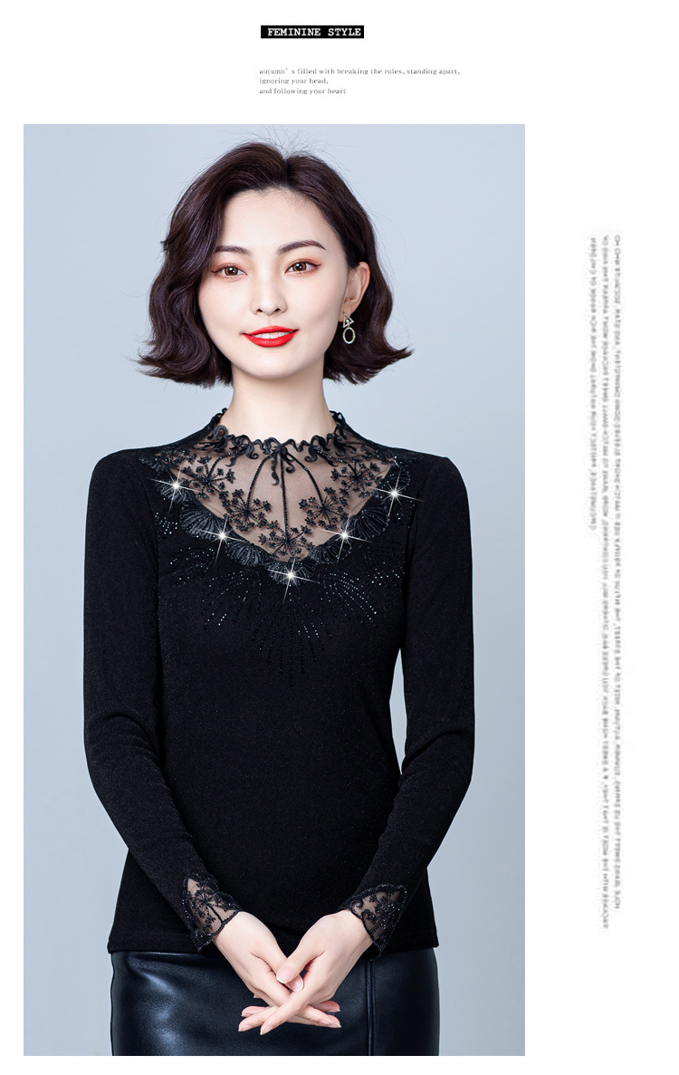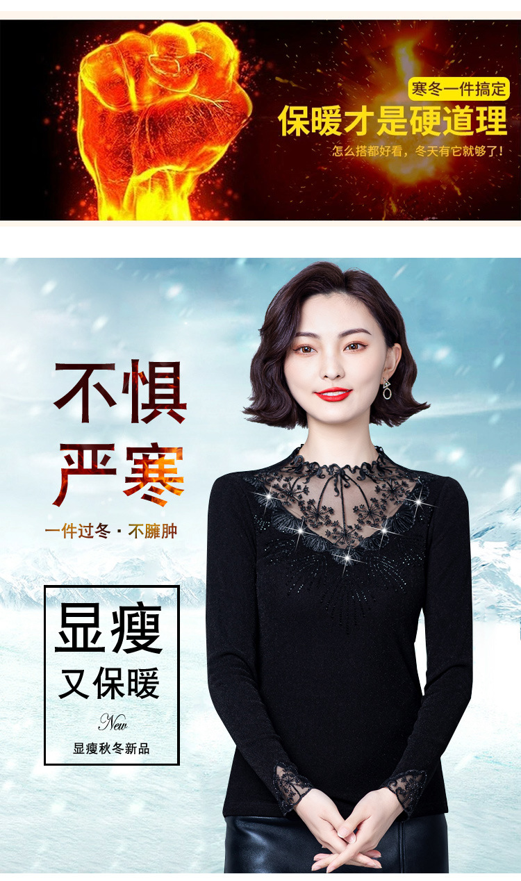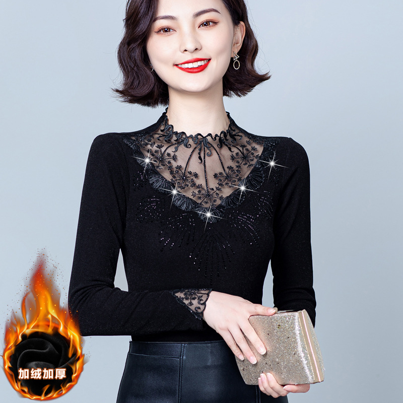 2020 가을/겨울 새로운 기모 두꺼운 백킹 셔츠 자수 메쉬 조커 플러스 사이즈 셔츠 슬림핏 슬리밍 티셔츠 여성용스토어 가기