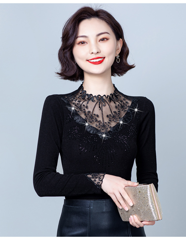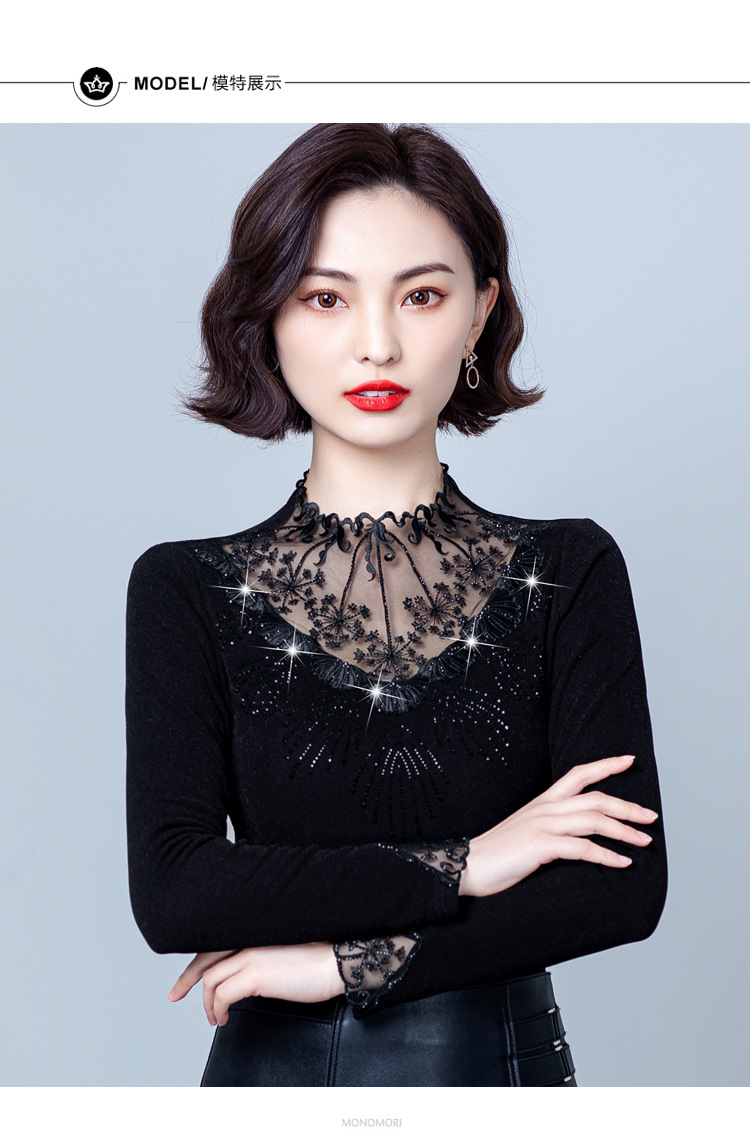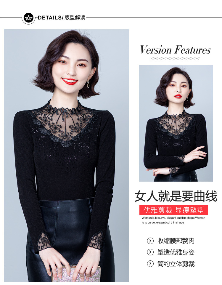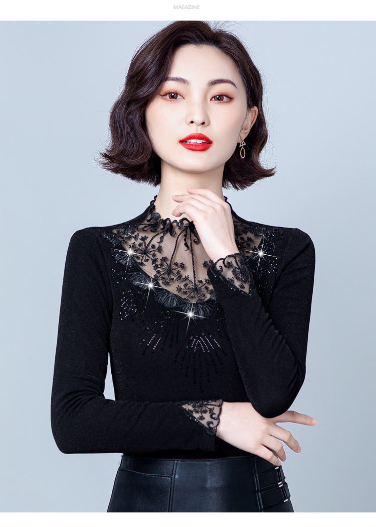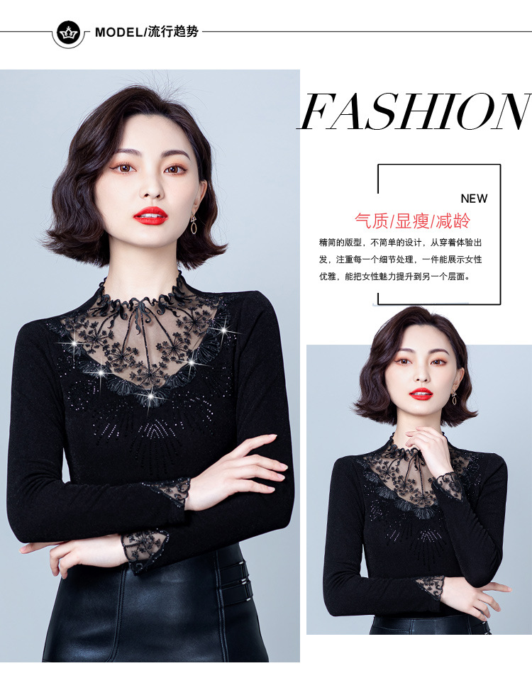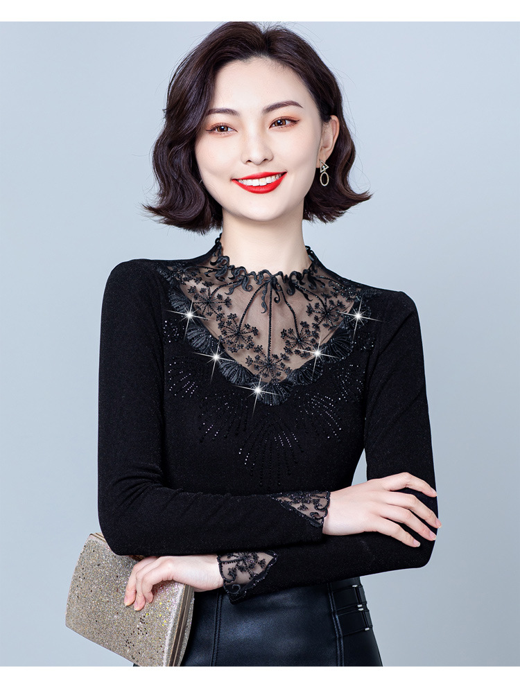 2020 가을/겨울 새로운 기모 두꺼운 백킹 셔츠 자수 메쉬 조커 플러스 사이즈 셔츠 슬림핏 슬리밍 티셔츠 여성용스토어 가기