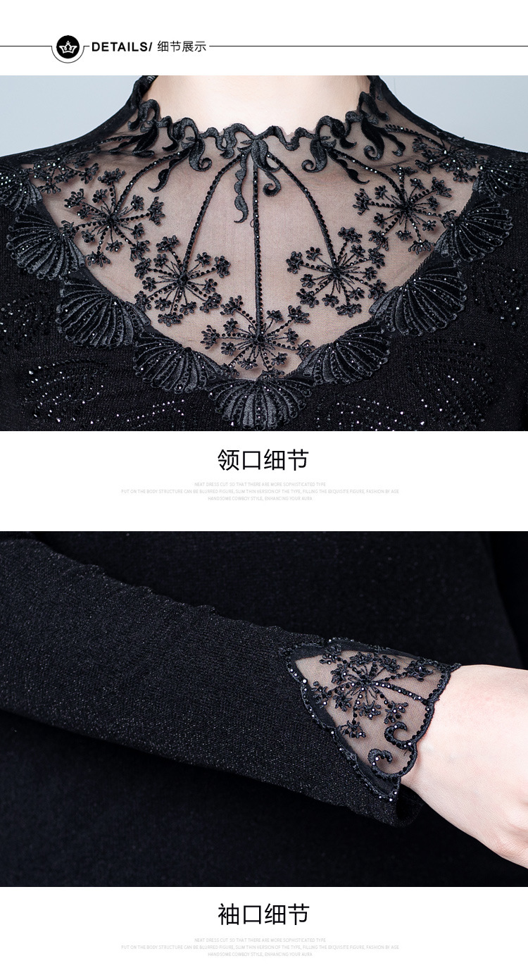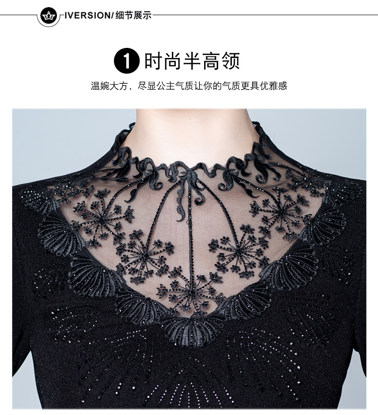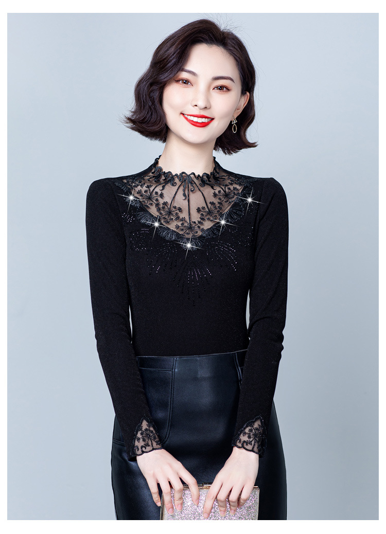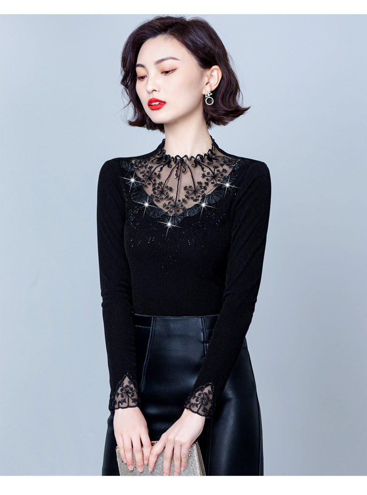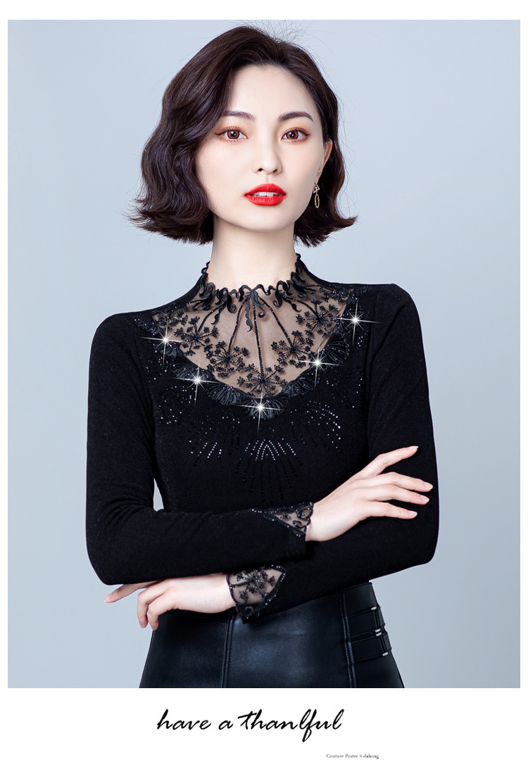 2020 가을/겨울 새로운 기모 두꺼운 백킹 셔츠 자수 메쉬 조커 플러스 사이즈 셔츠 슬림핏 슬리밍 티셔츠 여성용스토어 가기