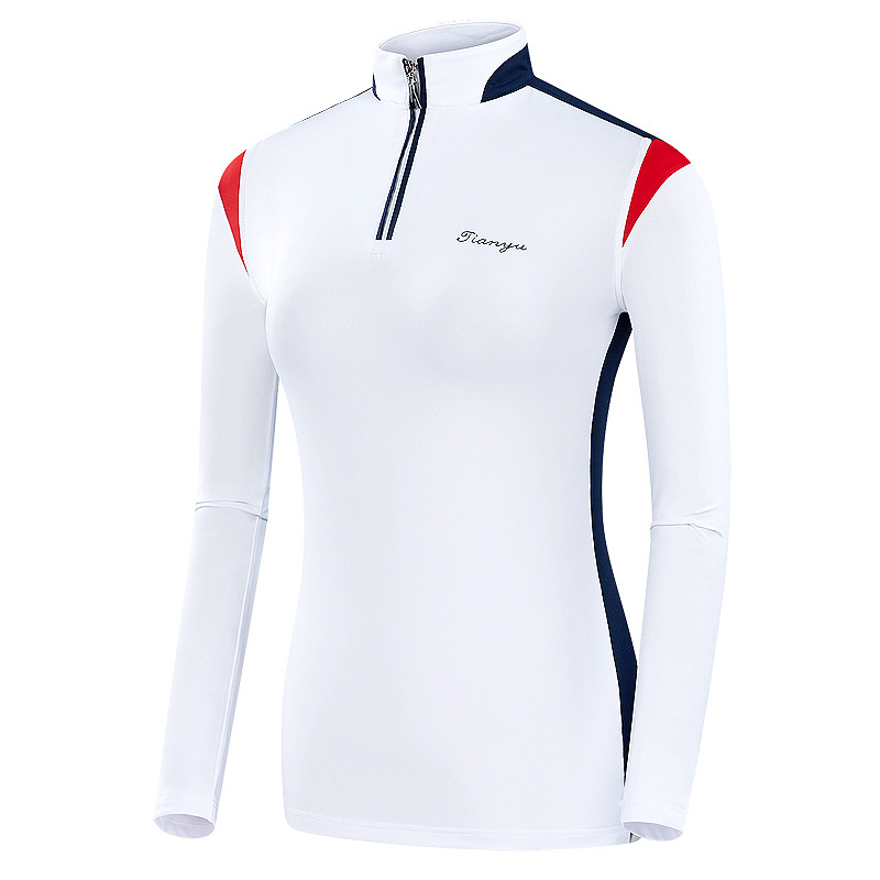 골프 의류 여성용 긴팔 셔츠 자외선 차단제 하이 칼라 지퍼 칼라 속건 의류 대비 스포츠 탑 저지 의류