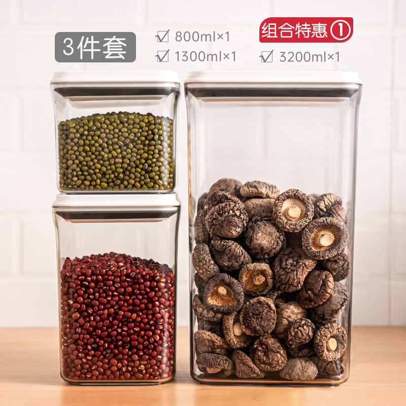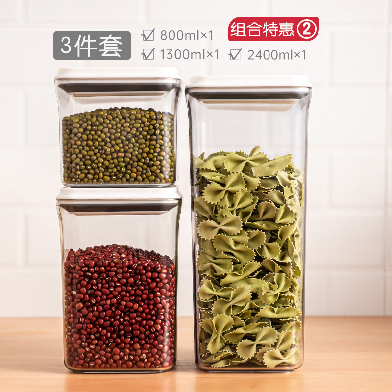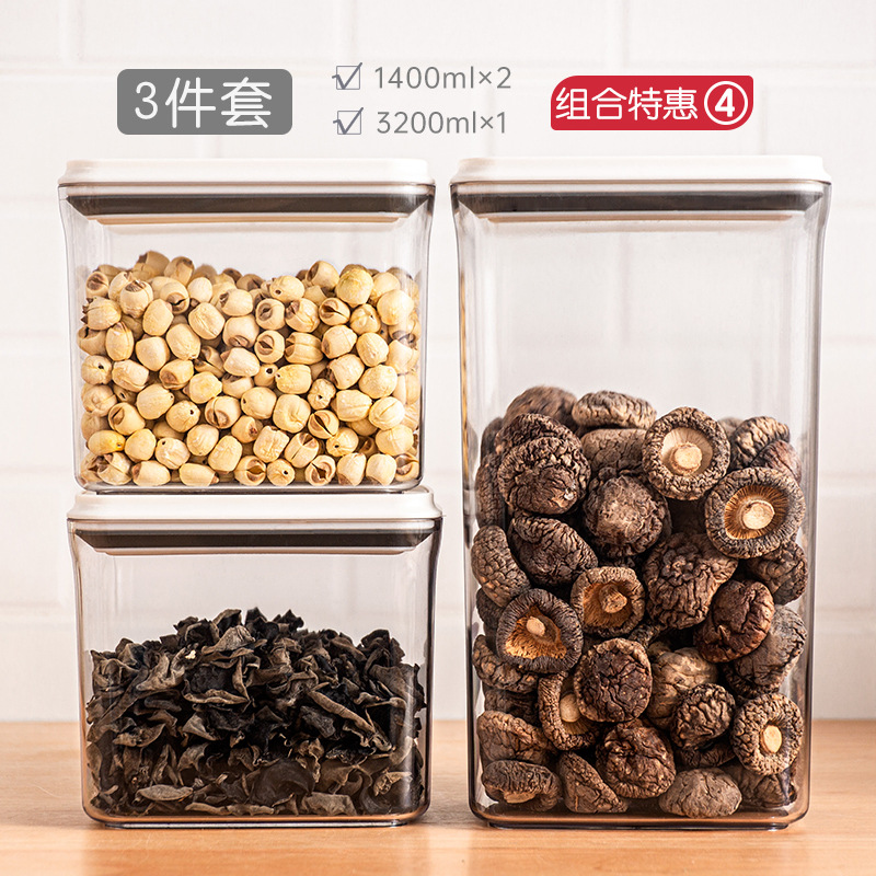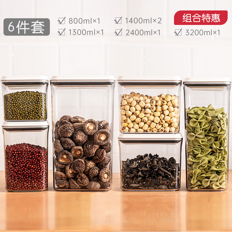 플라스틱 밀폐 용기 식품 등급 곡물 보관함 6세트 주방 회전형 사각형 방습 신선 보관병