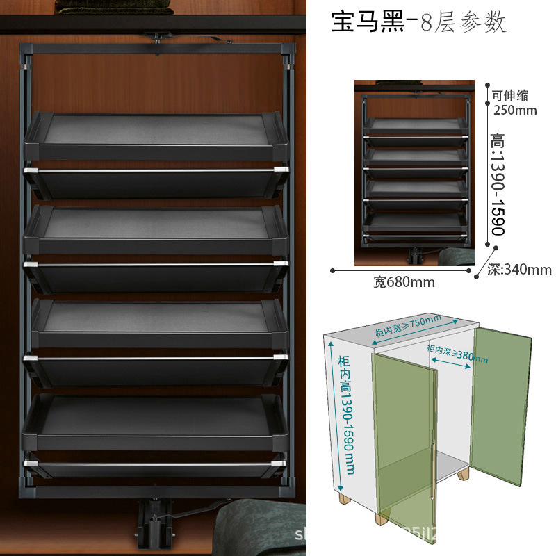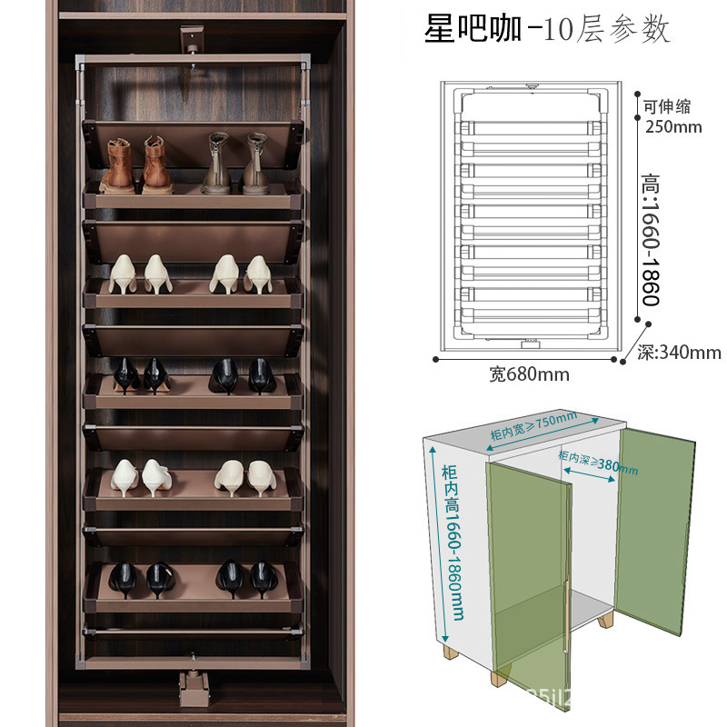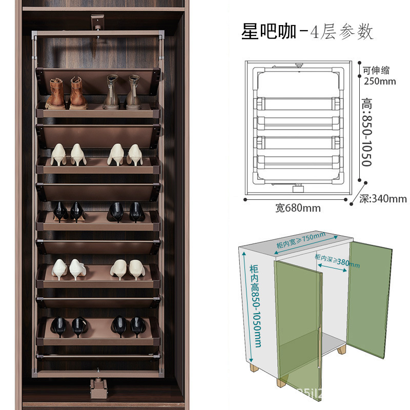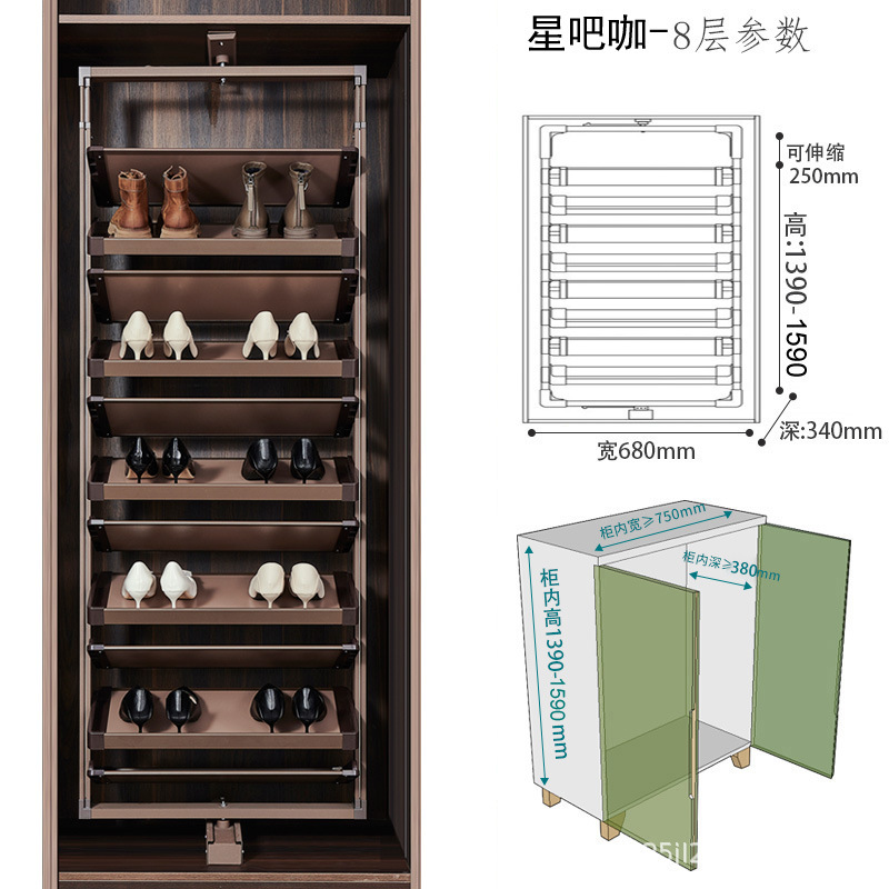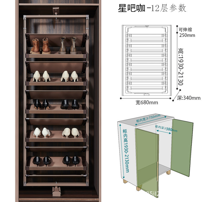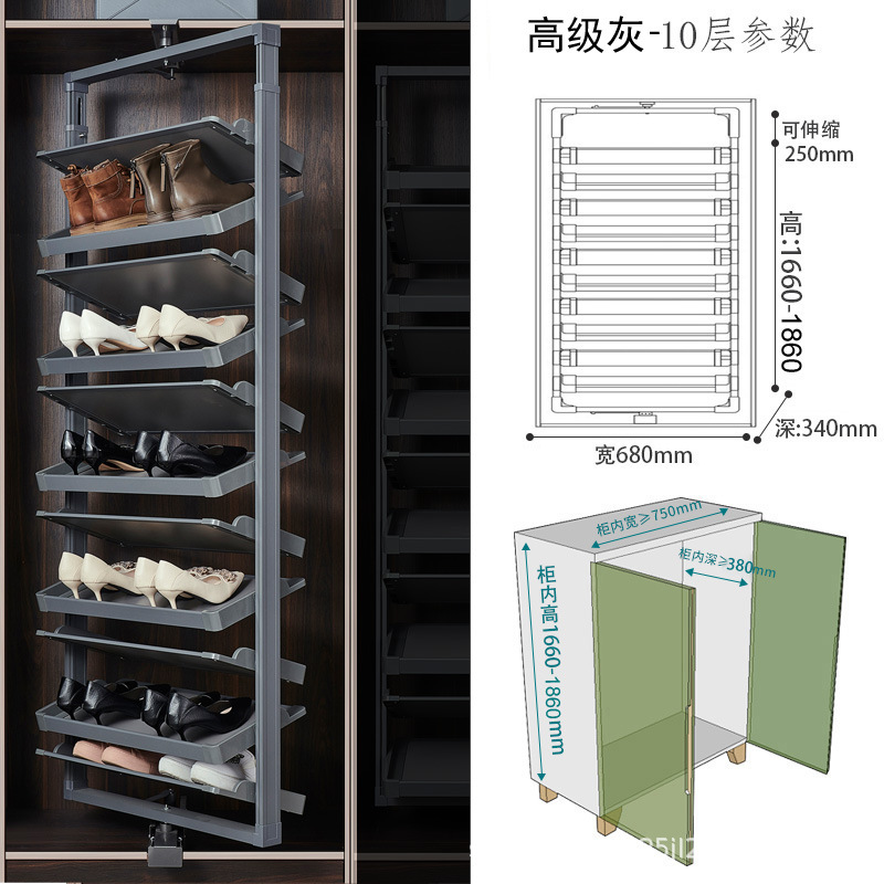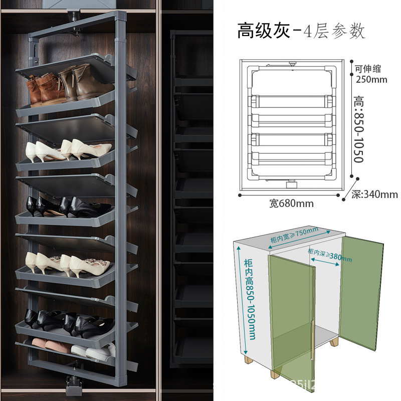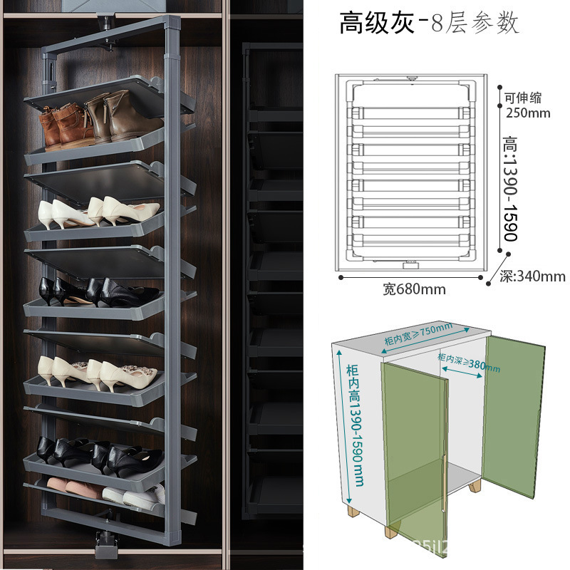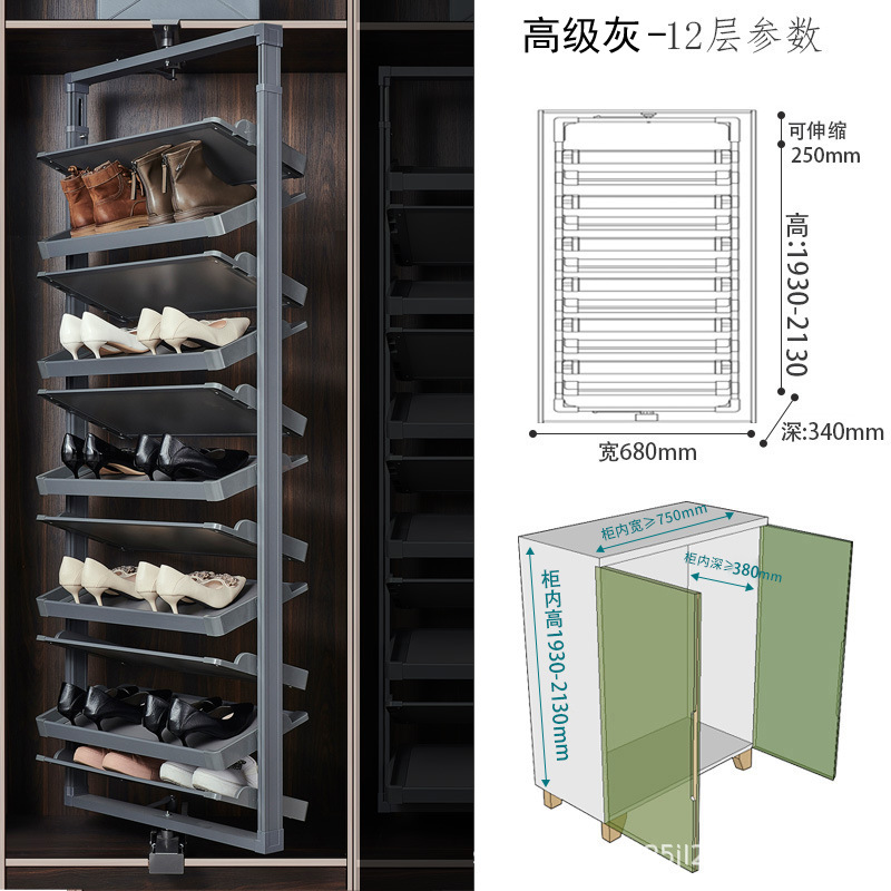 多层设计且可利用垂直空间,能容纳较多鞋子,一些款式高达 15 层甚至更多,可满足全家人的鞋类收纳需求