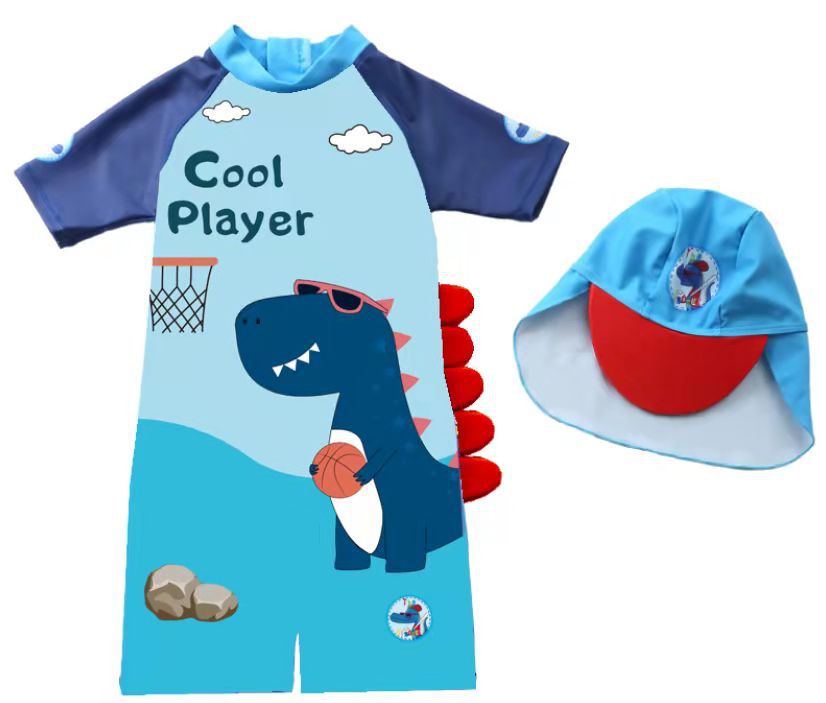 어린이 수영복 원피스 남아 유아 남아 수영복 공룡 요소 반팔