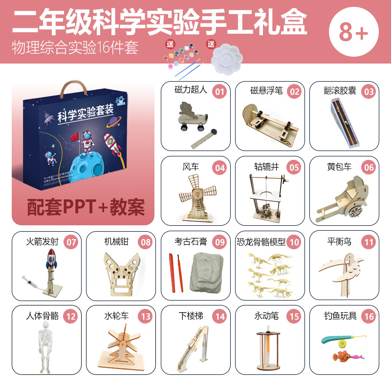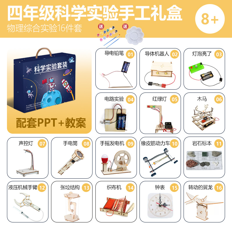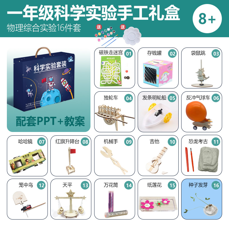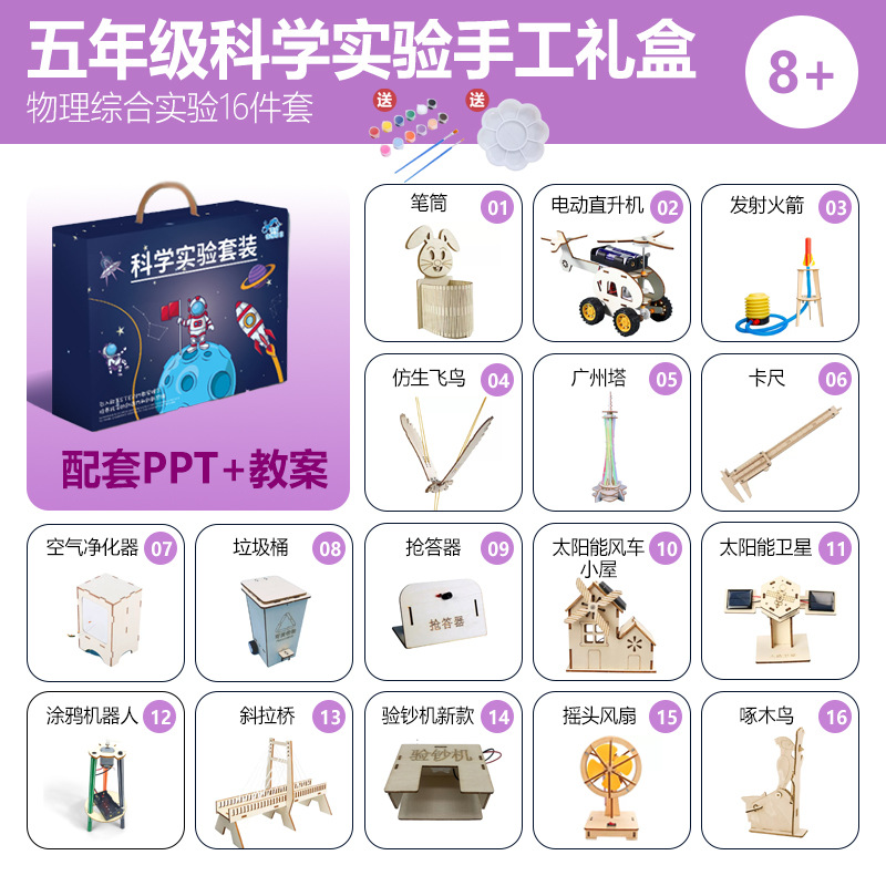 어린이 과학 실험 세트 학생 과학 기술 수제 DIY 나무 작은 만들기 유치원 증기 교육 완구스토어 가기