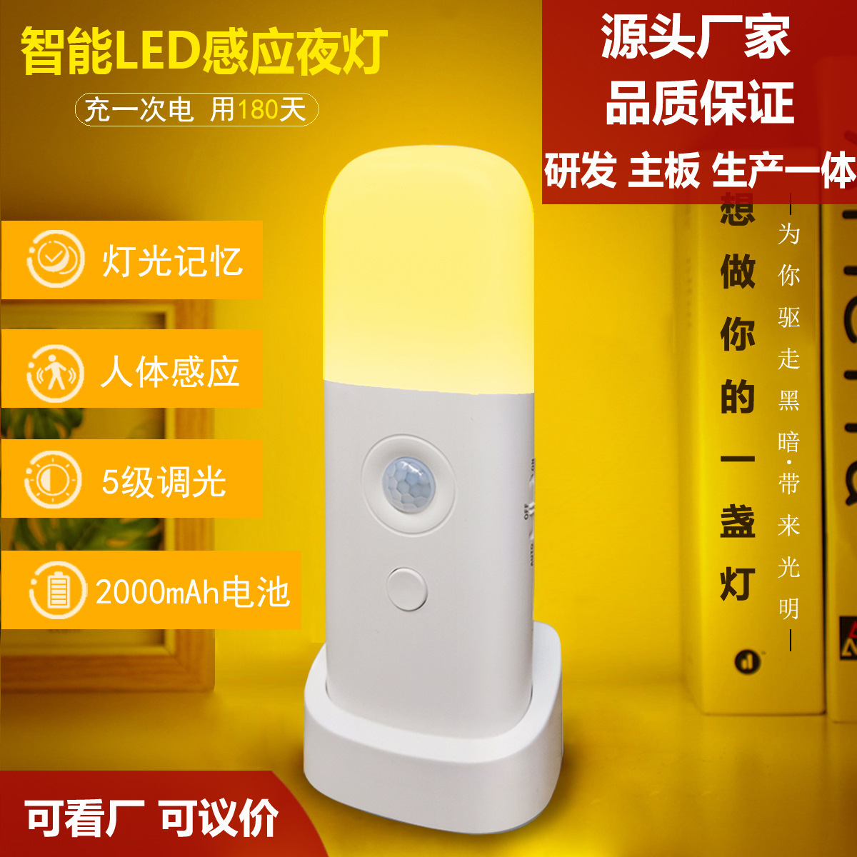 국경 간 무역 유럽 및 미국 표준 충전식 인체 감지 램프 스위치 밝기 조절 야간등스토어 가기