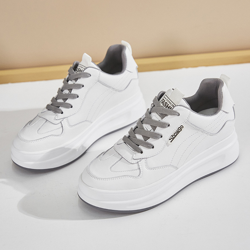 2021 봄 신발 두꺼운 밑창 플랫폼 슈즈 키높이 가죽 화이트 슈즈 다용도 기본 스타일 캐주얼 슈즈 여성용 통기성스토어 가기
