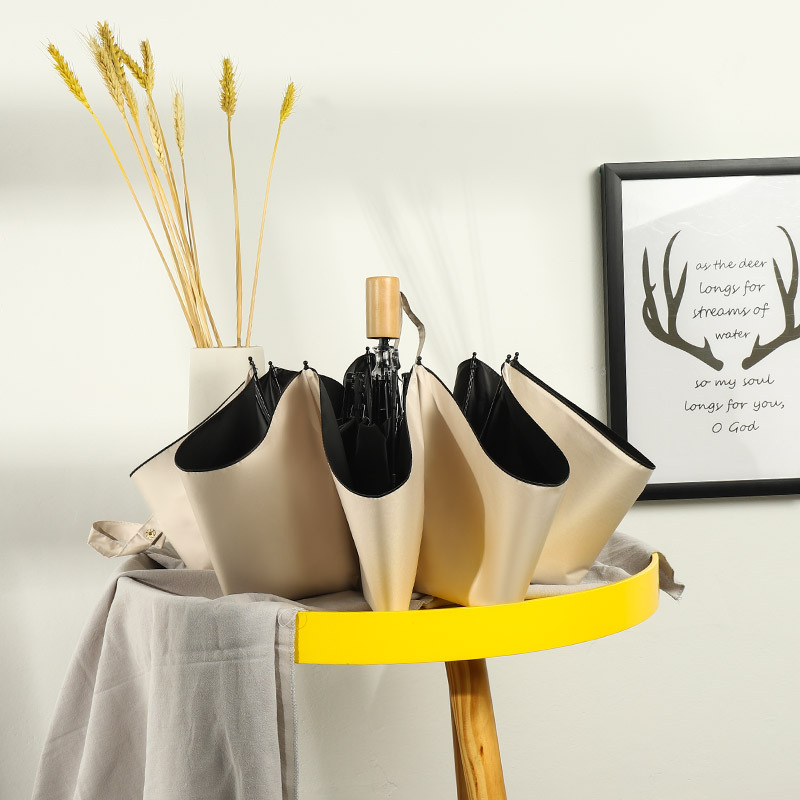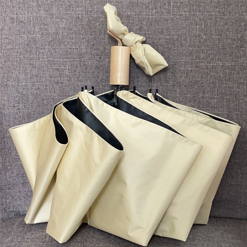 일본식 작은 신선한 스타일 나무 손잡이 검은 접착제 수동 3 배 우산 맑고 비 이중 목적 자외선 차단제 접는 우산 광고 선물 우산