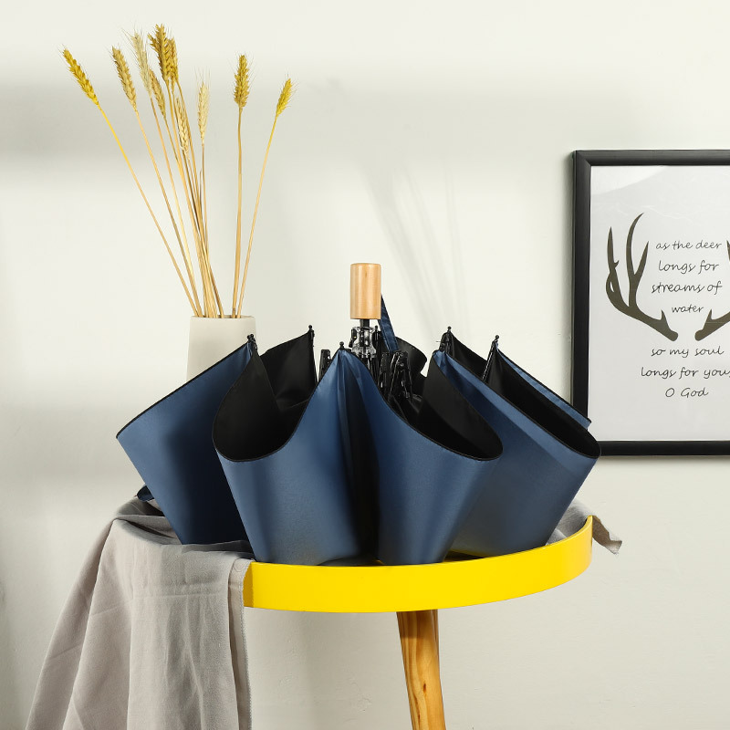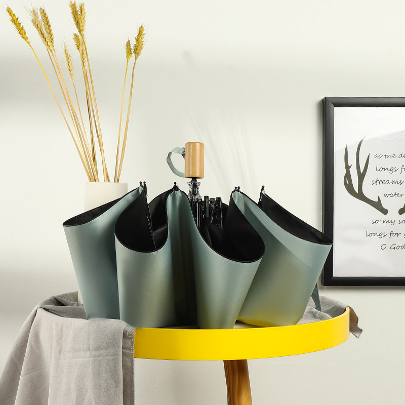 일본식 작은 신선한 스타일 나무 손잡이 검은 접착제 수동 3 배 우산 맑고 비 이중 목적 자외선 차단제 접는 우산 광고 선물 우산스토어 가기