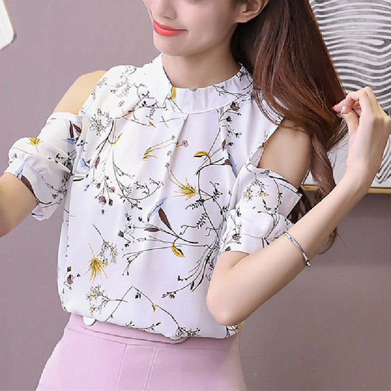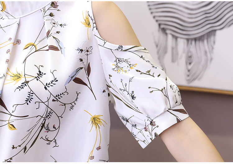 느슨한 스타일 신선한 달콤한 풀오버 쉬폰 한국 스타일 인쇄 노란색 라운드 넥 쉬폰 셔츠스토어 가기