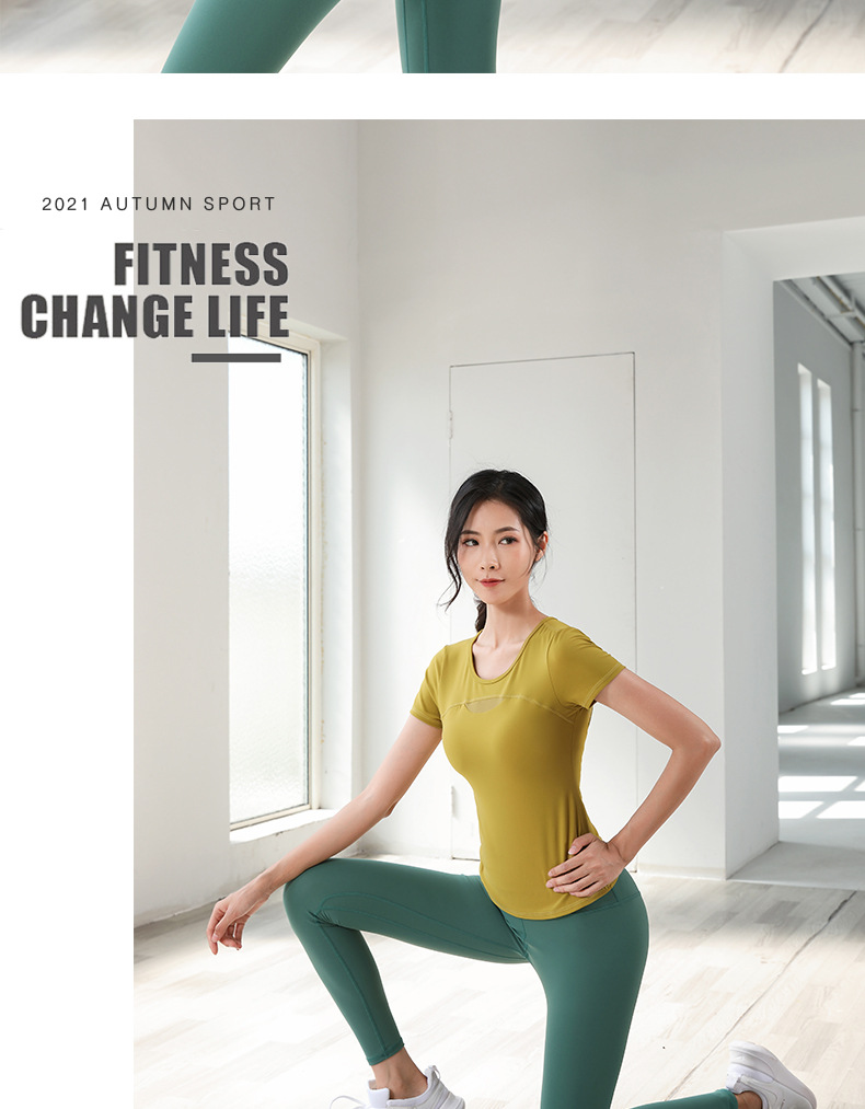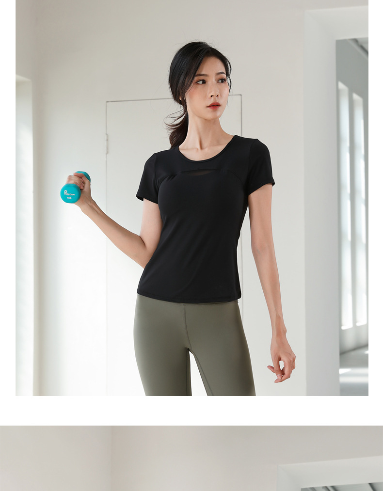 여성용 요가복 여름 신상 메쉬 패치워크 탈부착 가능한 반팔 티셔츠 스포츠 아웃도어 속건성 피트니스 상의스토어 가기