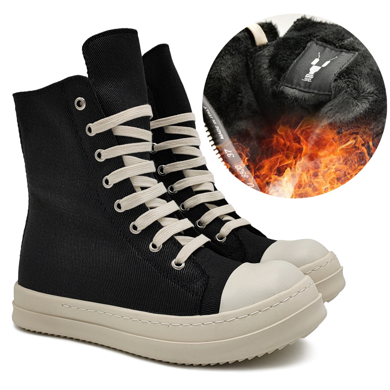 가을과 겨울 하이 탑 남성 신발 레이스 업 기모 따뜻한 천 신발 레이스 업 라운드 헤드 두꺼운 밑창 여성 신발 애호가 남성용 왁스 온 보드 신발스토어 가기