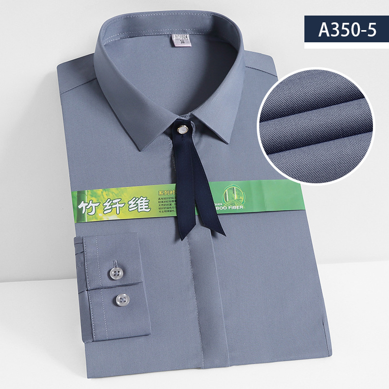대나무 섬유 긴팔 셔츠 여성의 비즈니스 캐주얼 셔츠 탄성 비 다림질 단색 사용자 정의 자수 로고 비즈니스 원피스 공식 원피스스토어 가기