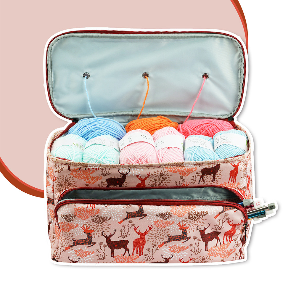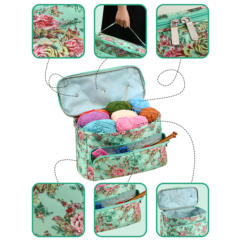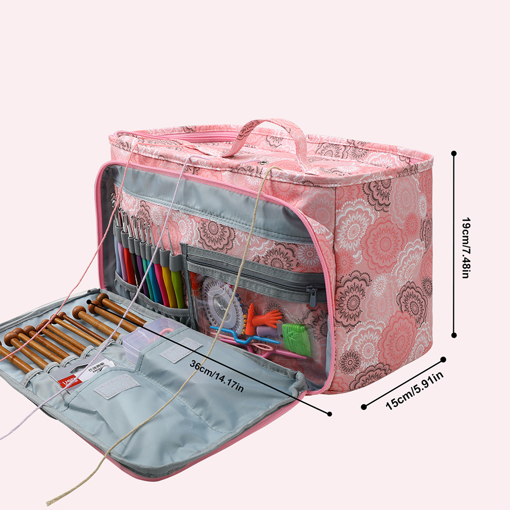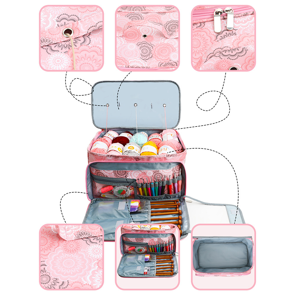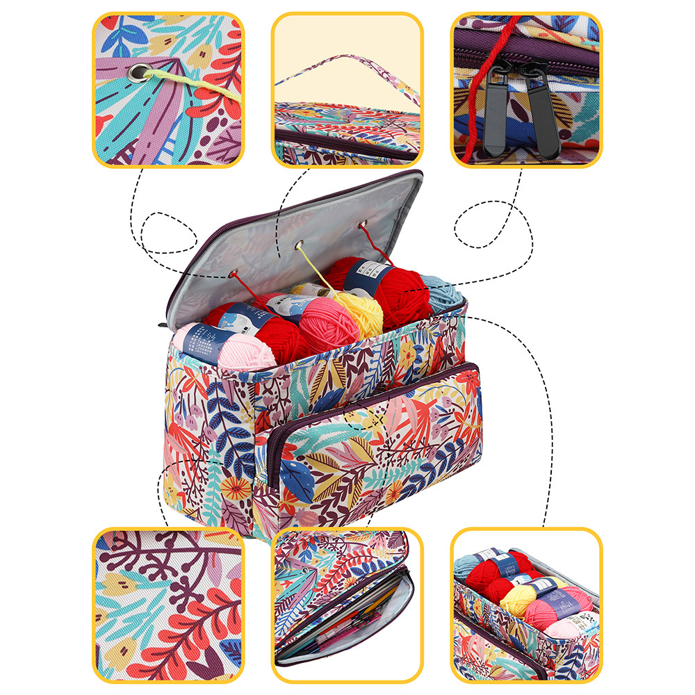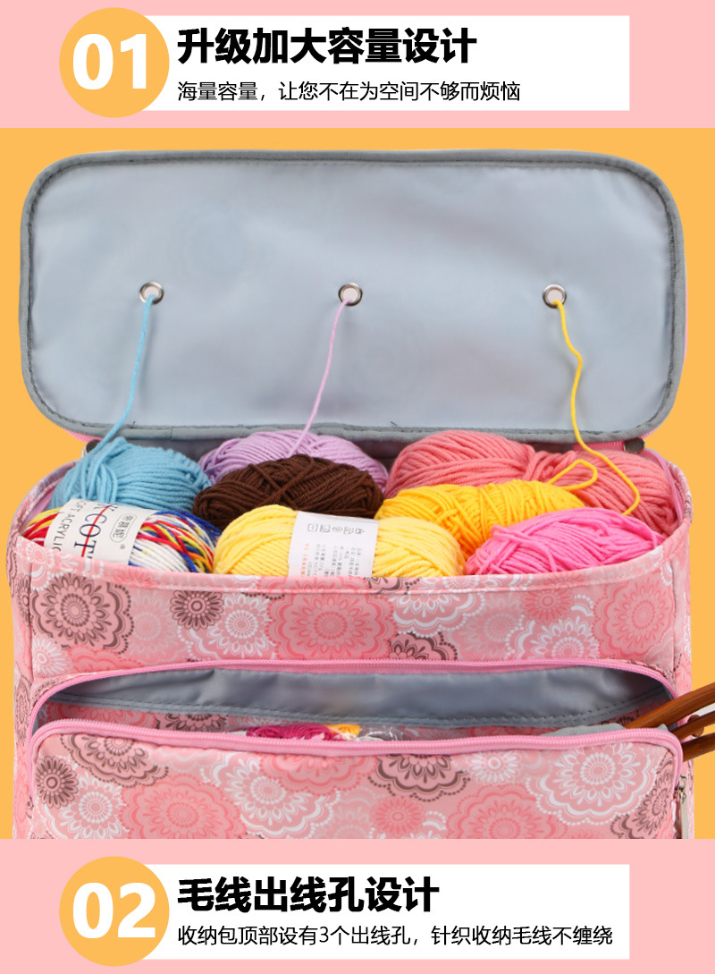아마존 스웨터 바늘 뜨개질 도구 보관 가방 3 홀 울 가방 대형 어깨 끈 원사 크로 셰 뜨개질 가방스토어 가기