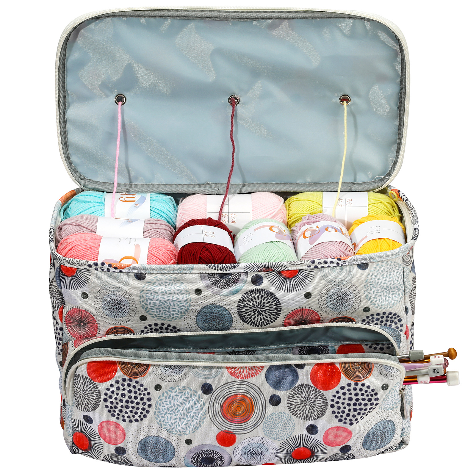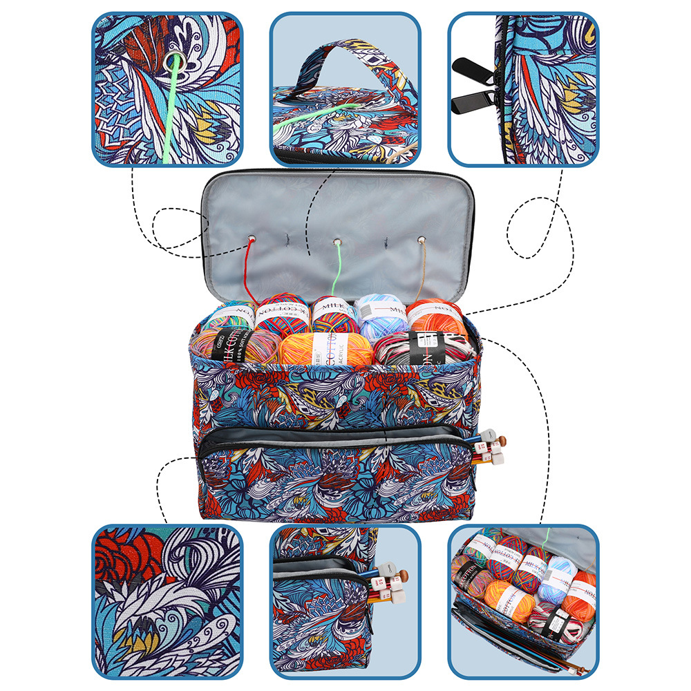 아마존 스웨터 바늘 뜨개질 도구 보관 가방 3 홀 울 가방 대형 어깨 끈 원사 크로 셰 뜨개질 가방