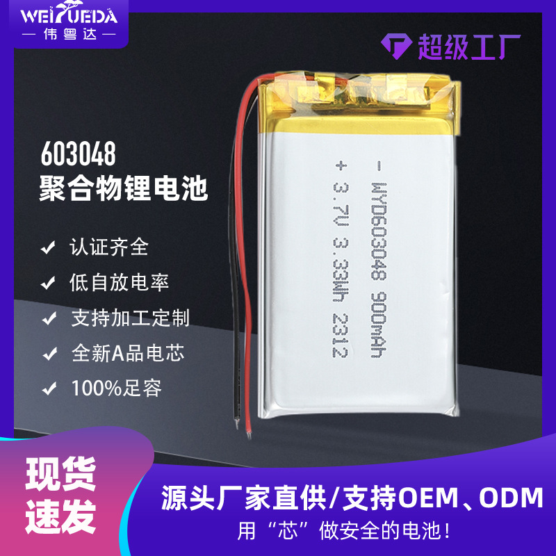 603048 폴리머 리튬 배터리 900mAh 3.7V 디지털 카메라 레코더 가열 장갑 충전식 리튬 배터리
