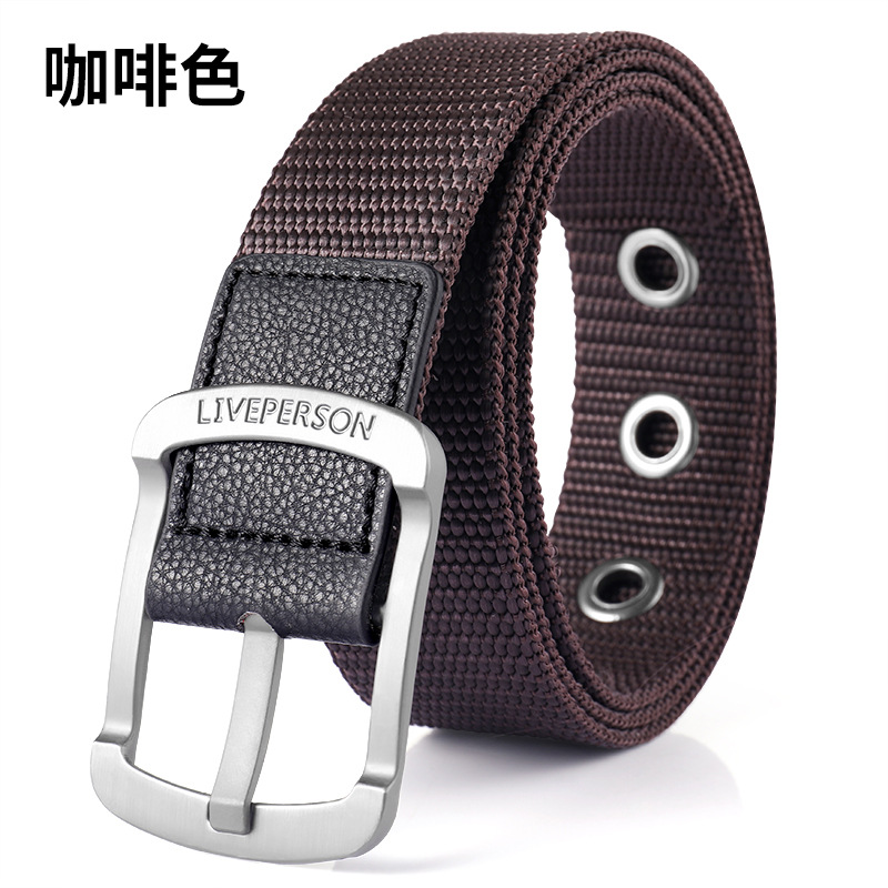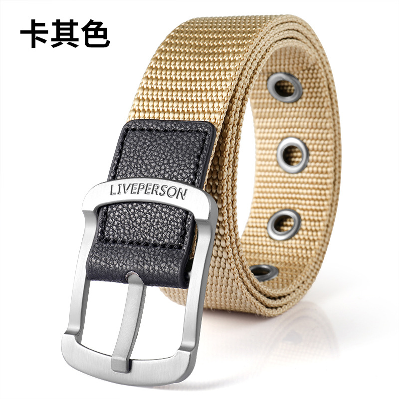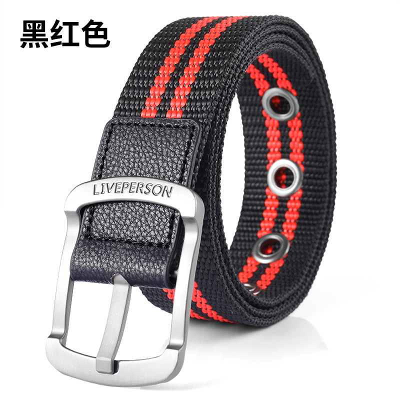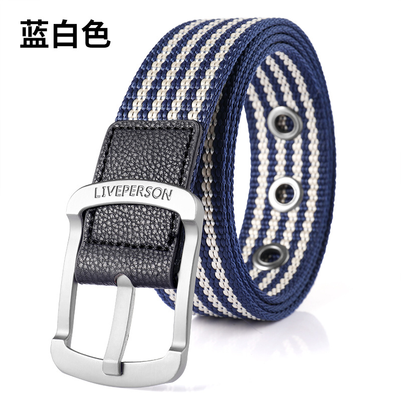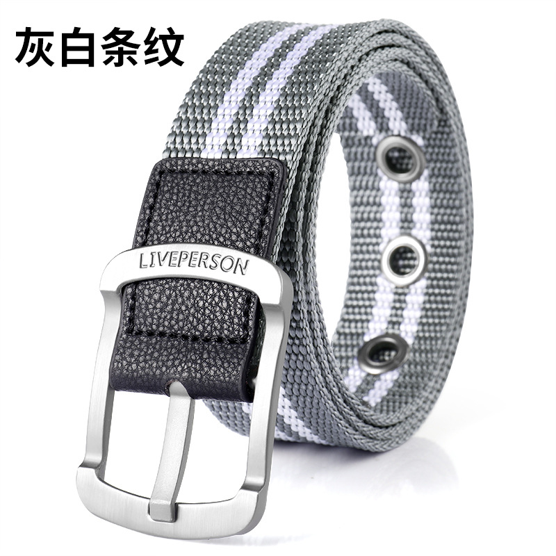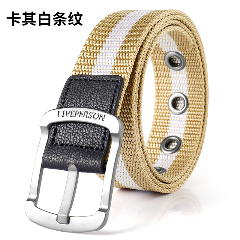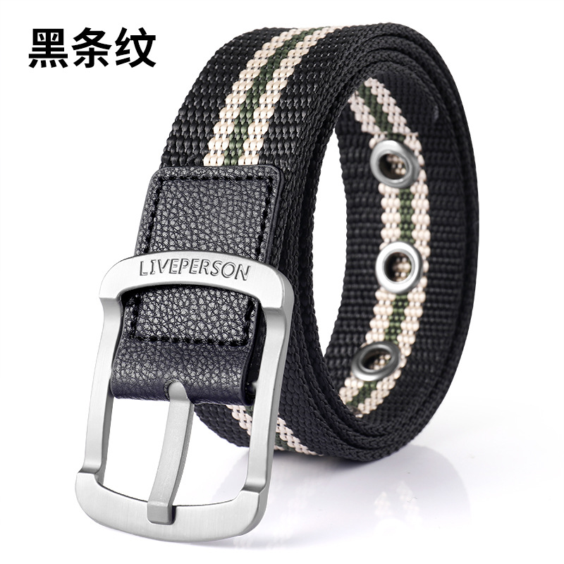 남성과 여성의 벨트 핀 버클 캔버스 벨트 캐주얼 커버 바지 한국식 트렌디 남성 학생 청소년 군사 훈련 야외
