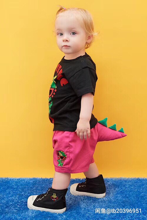 [재고] 2023 Summer Tide 브랜드 높은 설정 아동복 블랙 슈퍼 젖꼭지 공룡 꼬리 소년 소녀 반바지스토어 가기