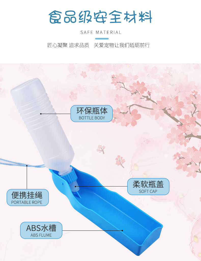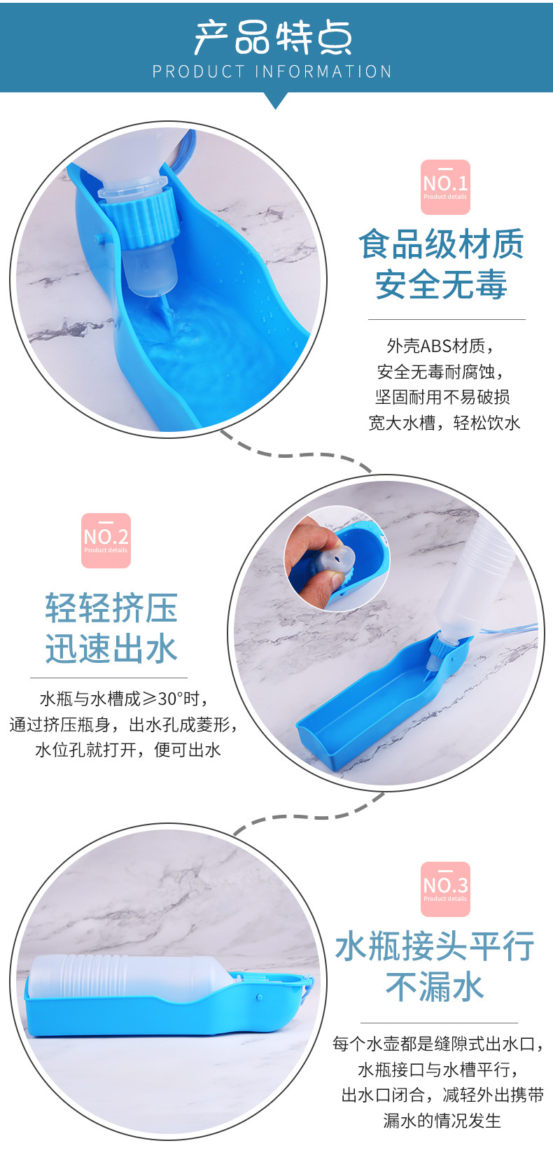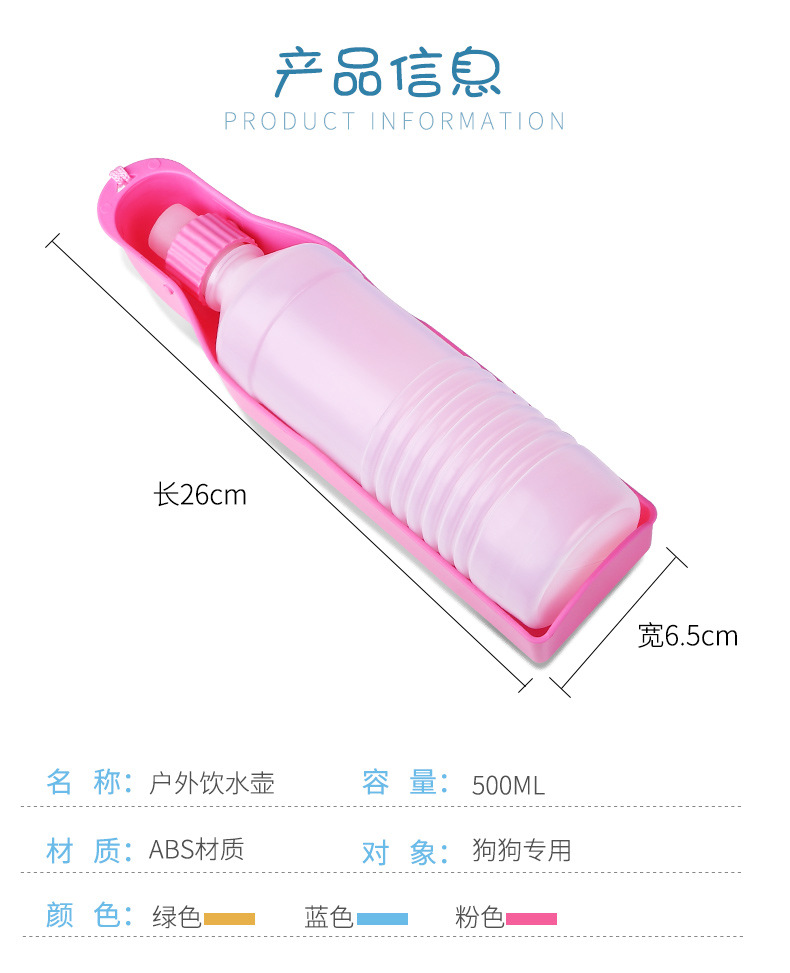 애완 동물 동반 급수기 500ml 애완 동물 야외 용품 휴대용 개 주전자 애완 동물 밖으로 식수 장치