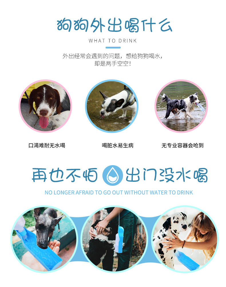 애완 동물 동반 급수기 500ml 애완 동물 야외 용품 휴대용 개 주전자 애완 동물 밖으로 식수 장치스토어 가기