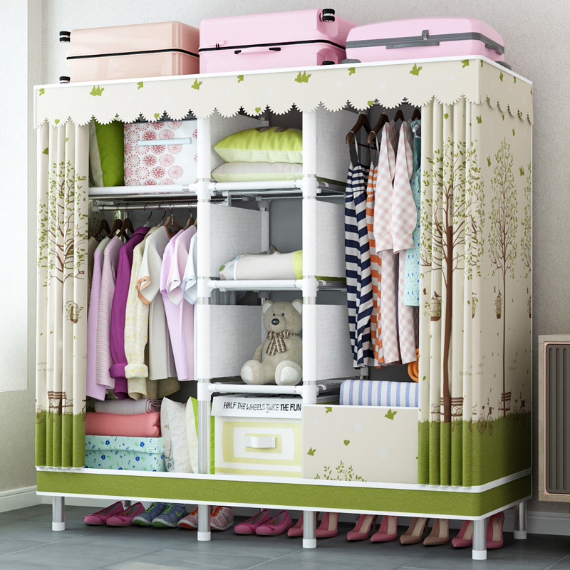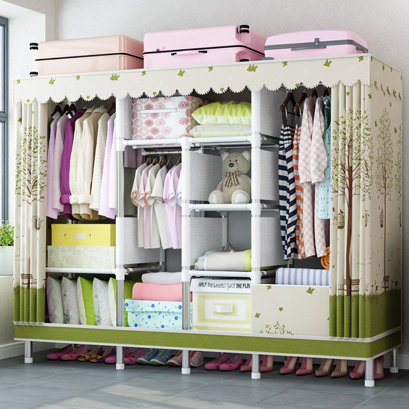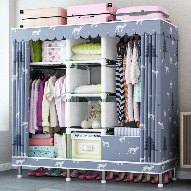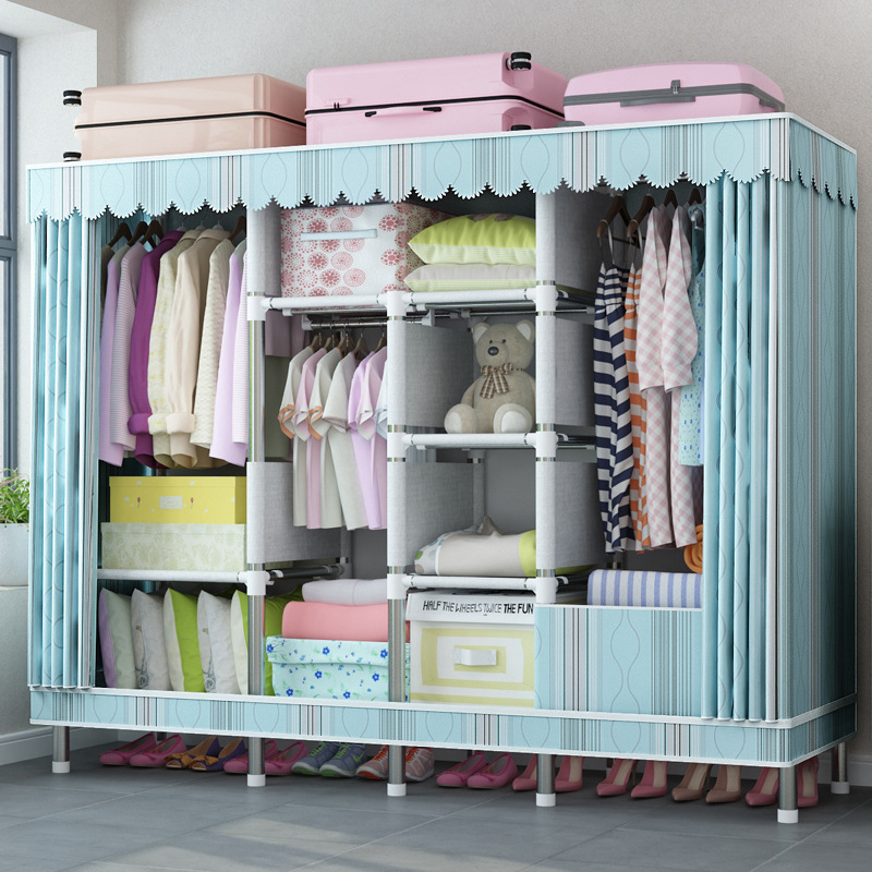지퍼 완전 폐쇄 간단한 천 옷장 강관 두꺼운 강화 전체 강철 프레임 두꺼운 옥스포드 천 밀봉 가정용 천 캐비닛