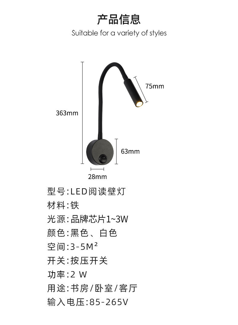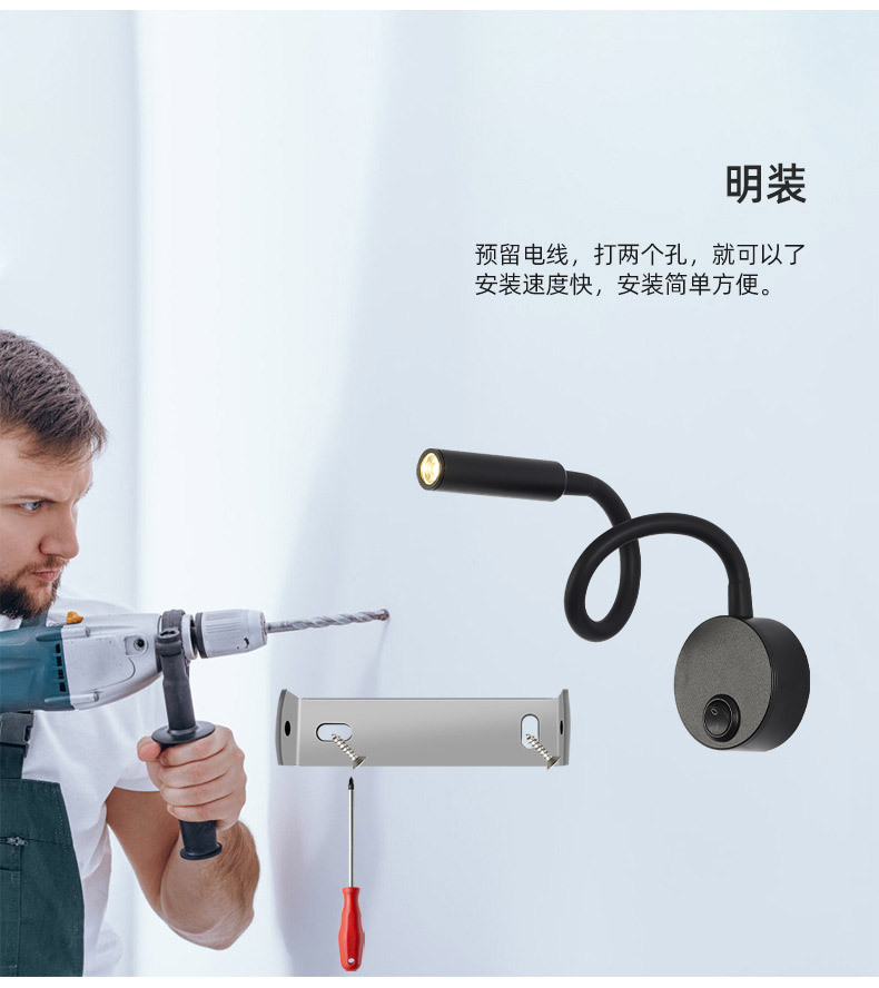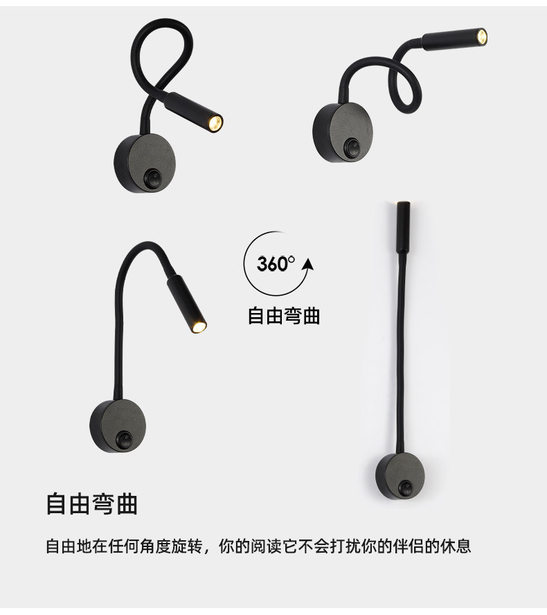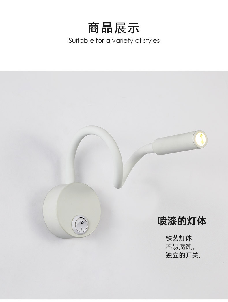 스위치가 있는 국경 간 LED 독서 벽등, 침실 침대 옆 고급 벽걸이등, 프랑스식 유연한 튜브 벽등