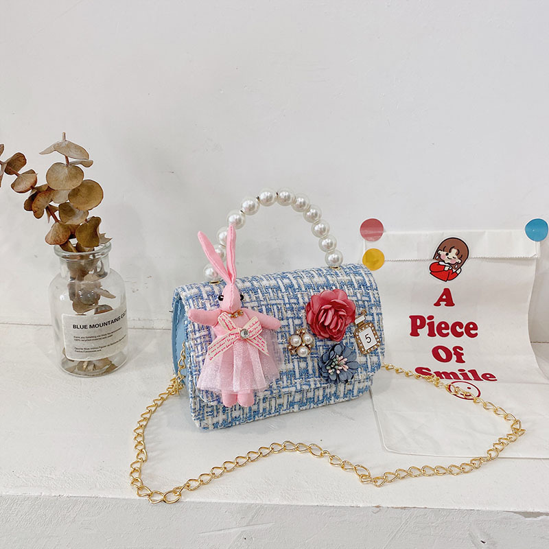 한국식 샤넬 스타일 여아 크로스 바디 백 유행 면과 린넨 어린이 가방 만화 귀여운 토끼 어린이 동전 지갑스토어 가기