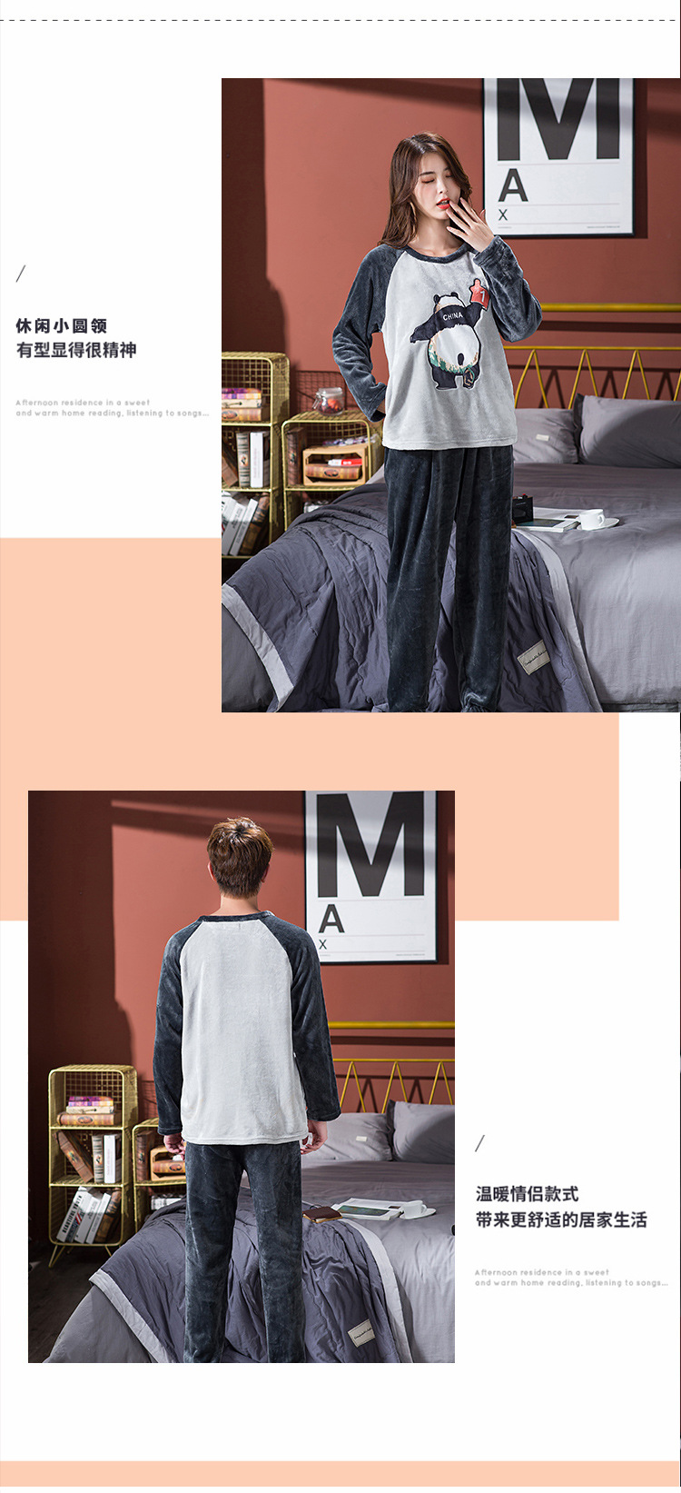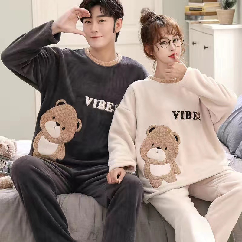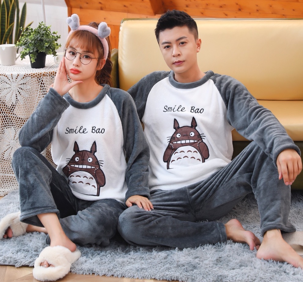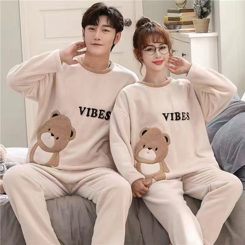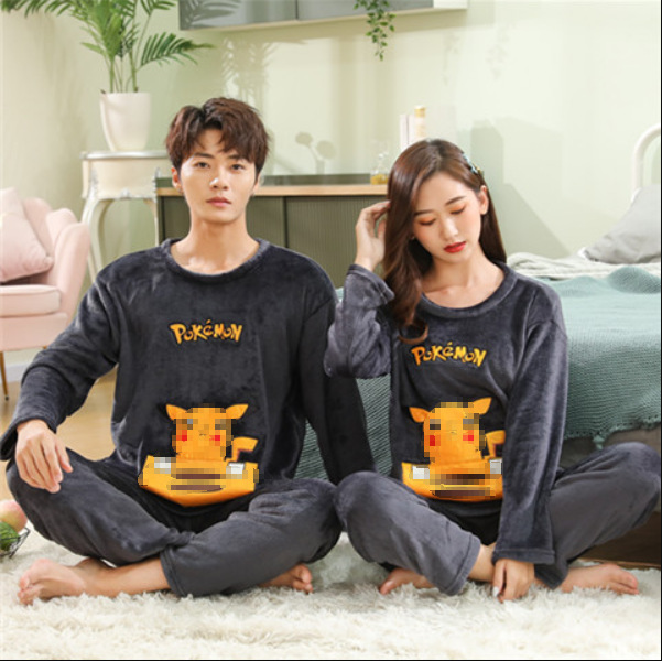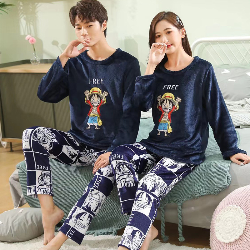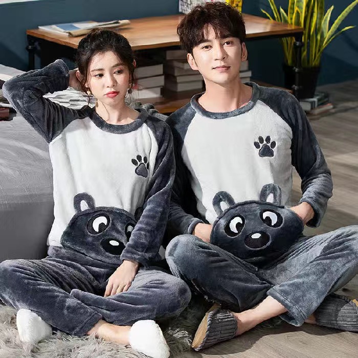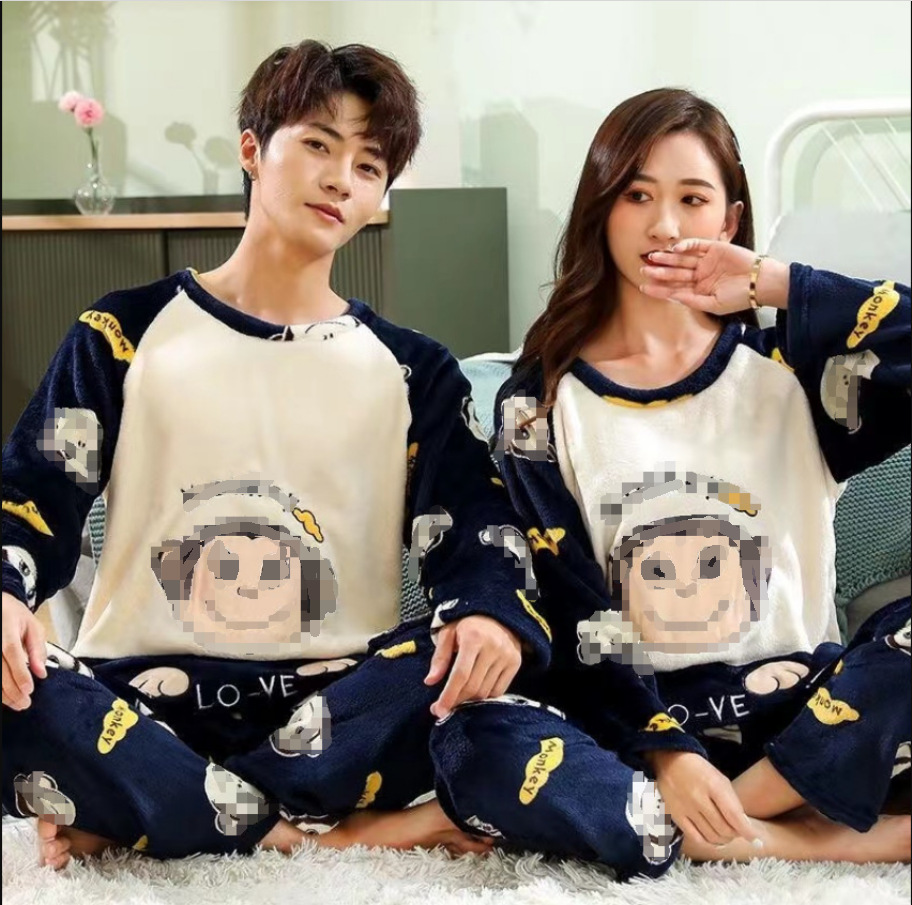 2023 얇은 커플 잠옷 여자의 기모 플란넬 남자의 봄, 가을과 겨울 나갈 수 있습니다 200g 가정 옷 세트스토어 가기