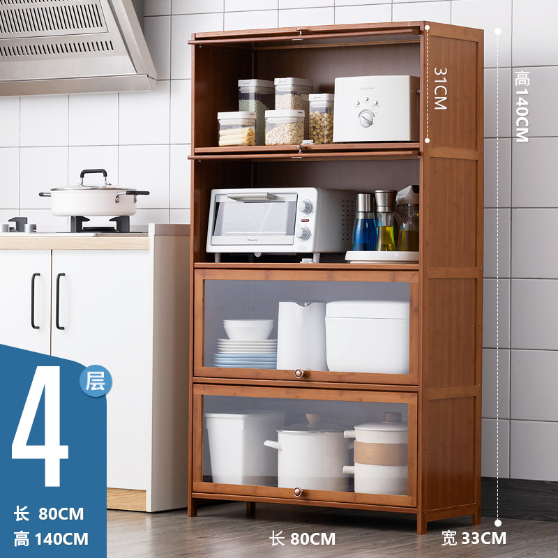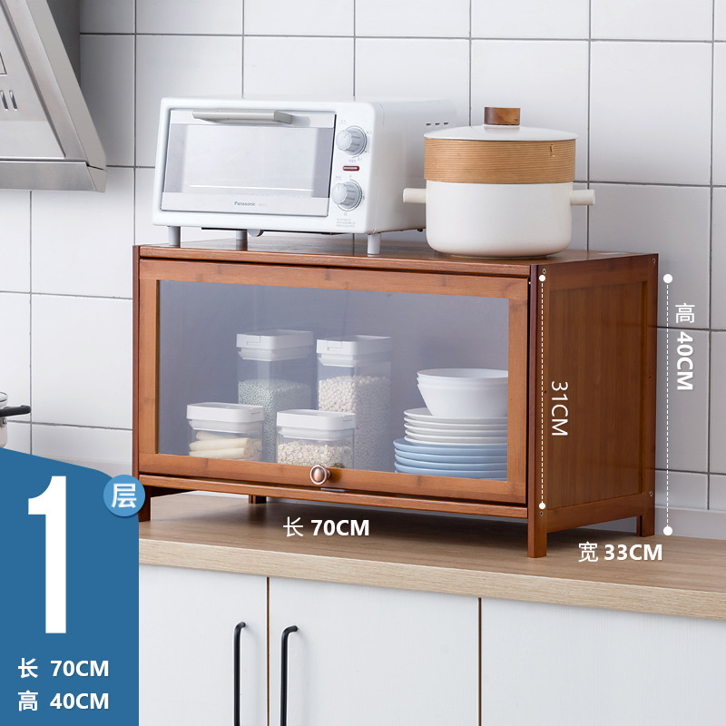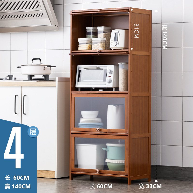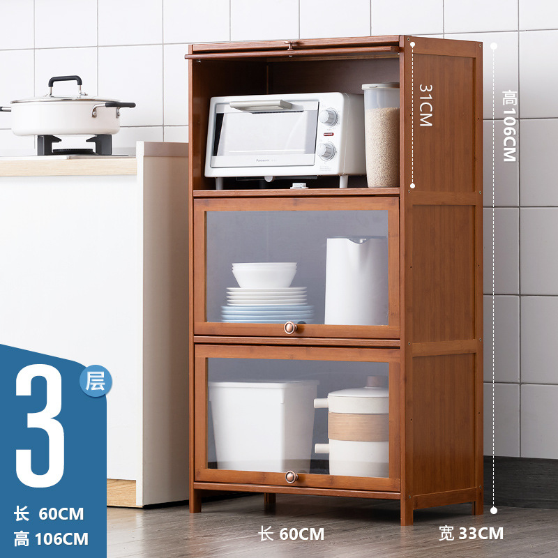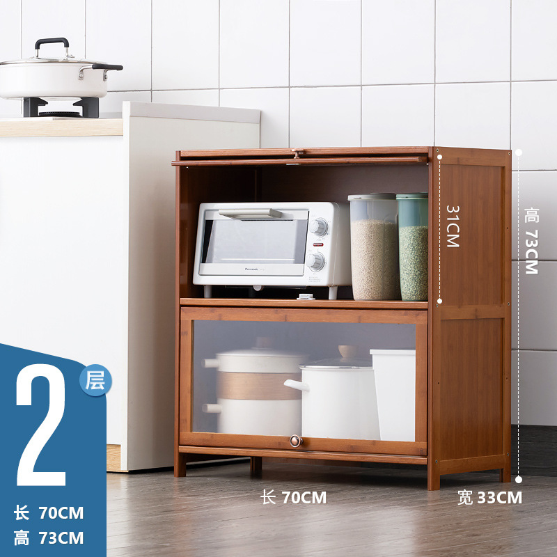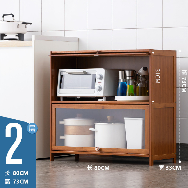 주방 용품 전자 레인지 보관 랙 바닥 대나무 냄비 및 요리 조미료 단단한 나무 캐비닛 책장 용 도어가있는 다기능스토어 가기