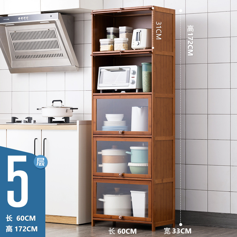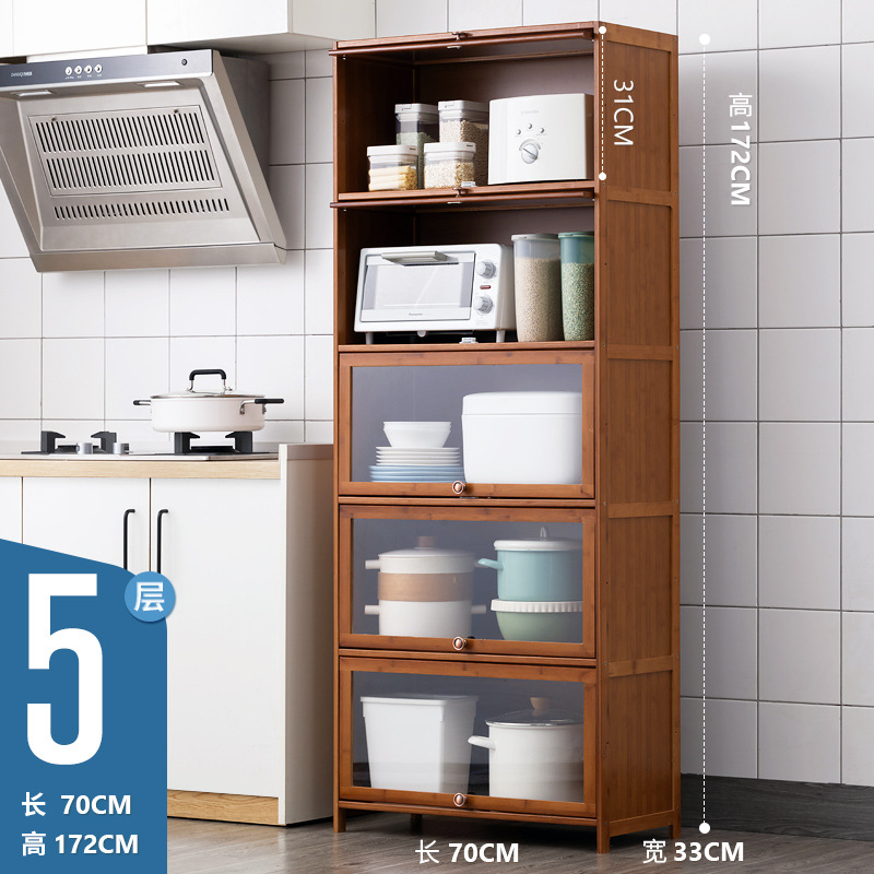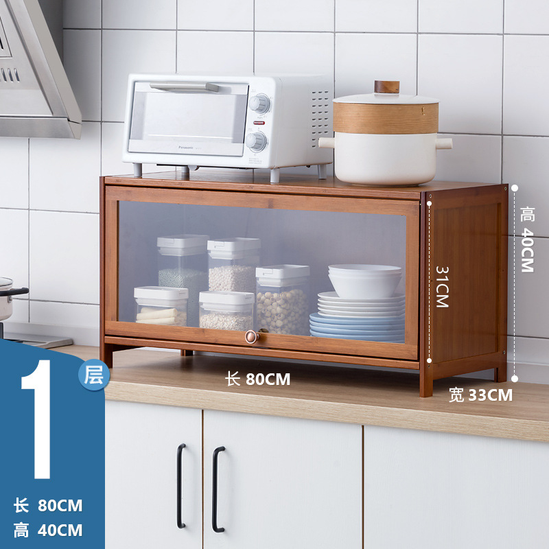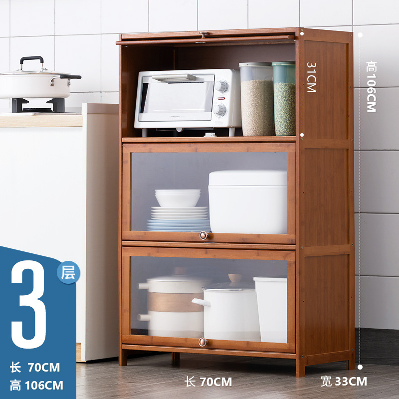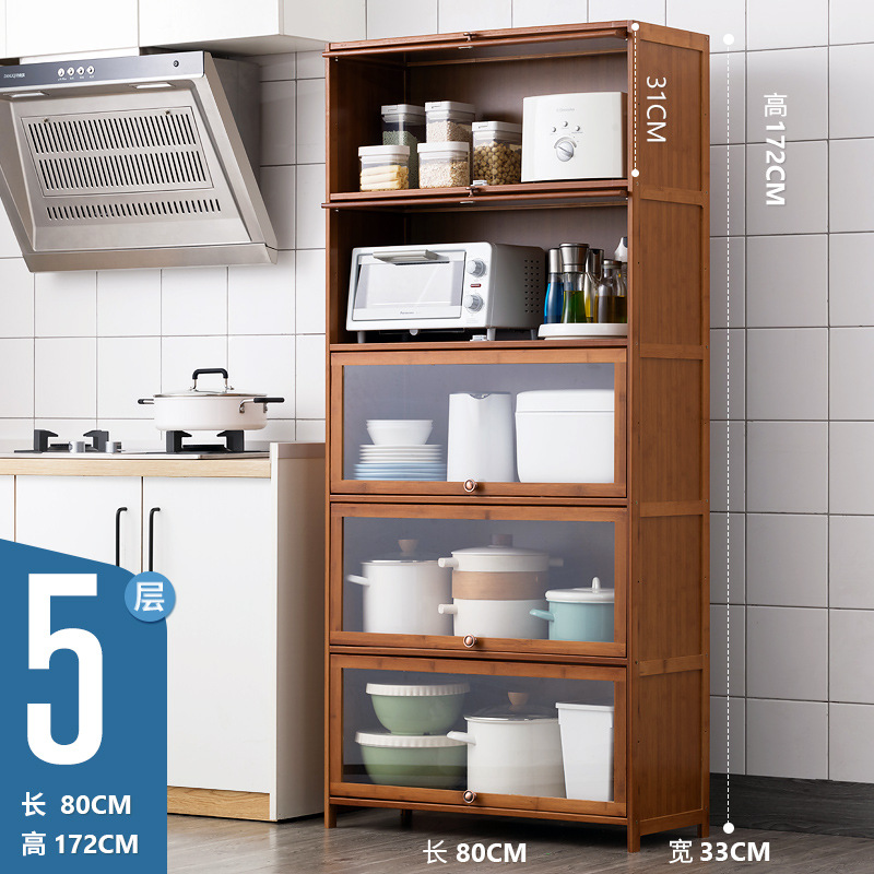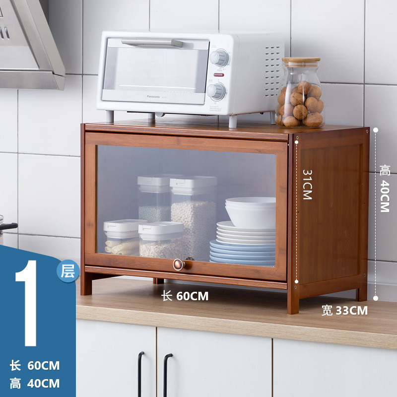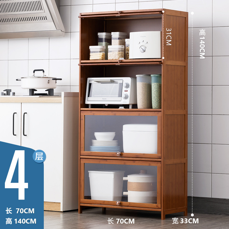 주방 용품 전자 레인지 보관 랙 바닥 대나무 냄비 및 요리 조미료 단단한 나무 캐비닛 책장 용 도어가있는 다기능스토어 가기