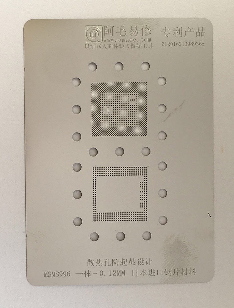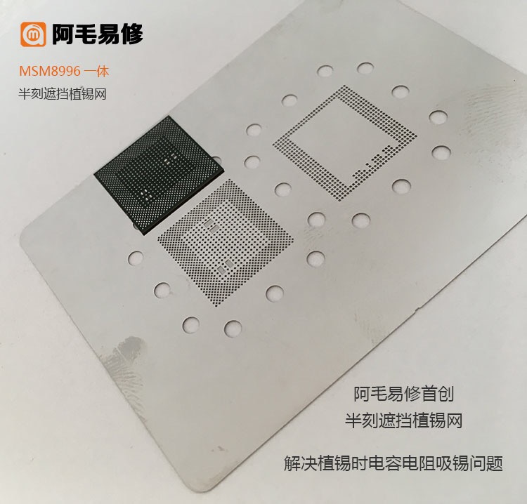 阿毛易修半刻遮挡植锡网MSM8996上下层一体钢网解决电容吸锡问题