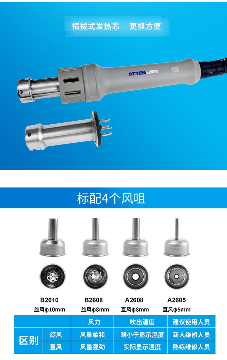 Antaixin ST-862D 무연 정전기 방지 납땜 제거 핫 에어건 스트레이트 에어 로터리 에어 고출력 지능형 용접 스테이션