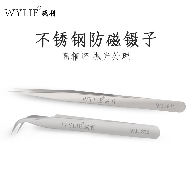 WYLIE 威利精密抛光镊子 超硬 抗磁 防酸 高精密 超精细镊子 直尖头 弯尖头镊子