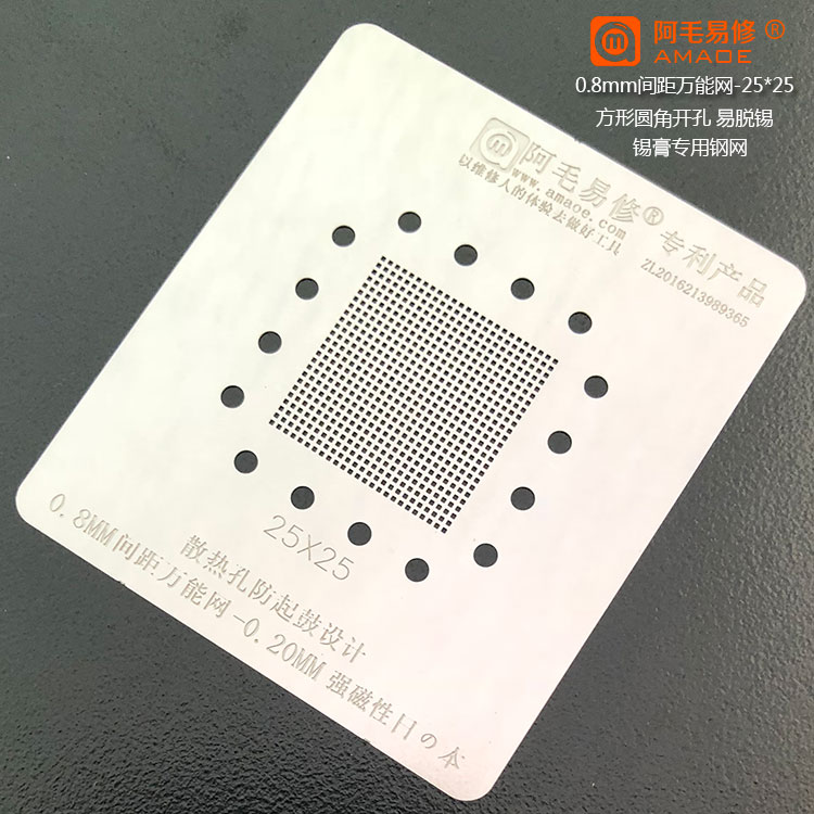 3、也有通用型钢网,【0.8间距25*25】,芯片焊盘间距是0.8mm的,脚位排数是25*25的都能用。