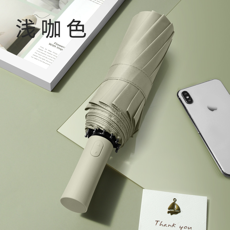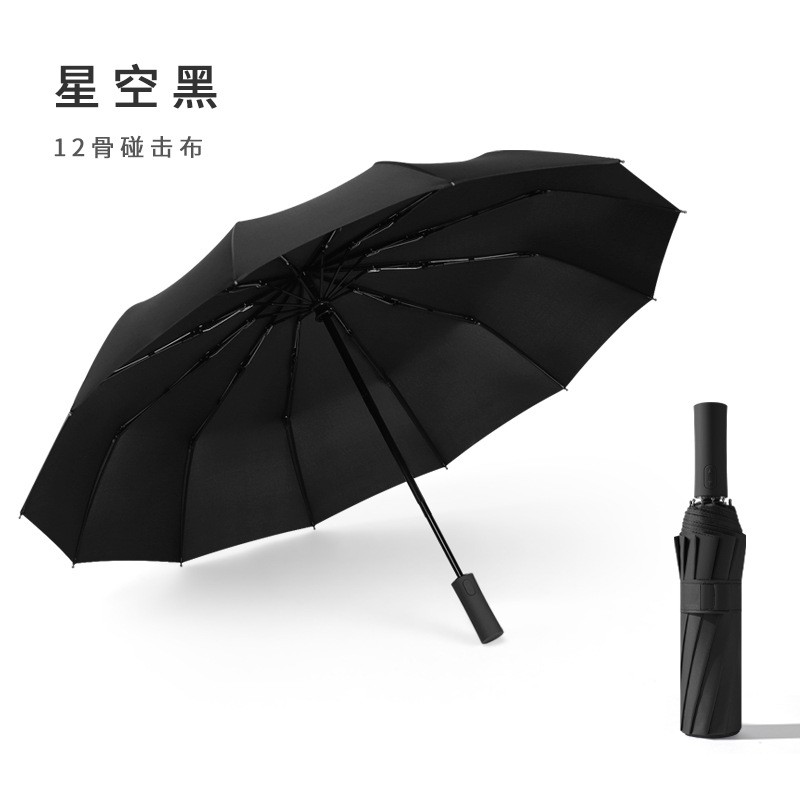 아마존 핫 12 뼈 검정 접착제 자동 우산 증가 비즈니스 우산 광고 선물 우산 인쇄 된 로고 세대스토어 가기