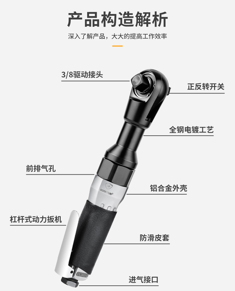 • 3/8 래칫 렌치 흑백 광택 핸들
