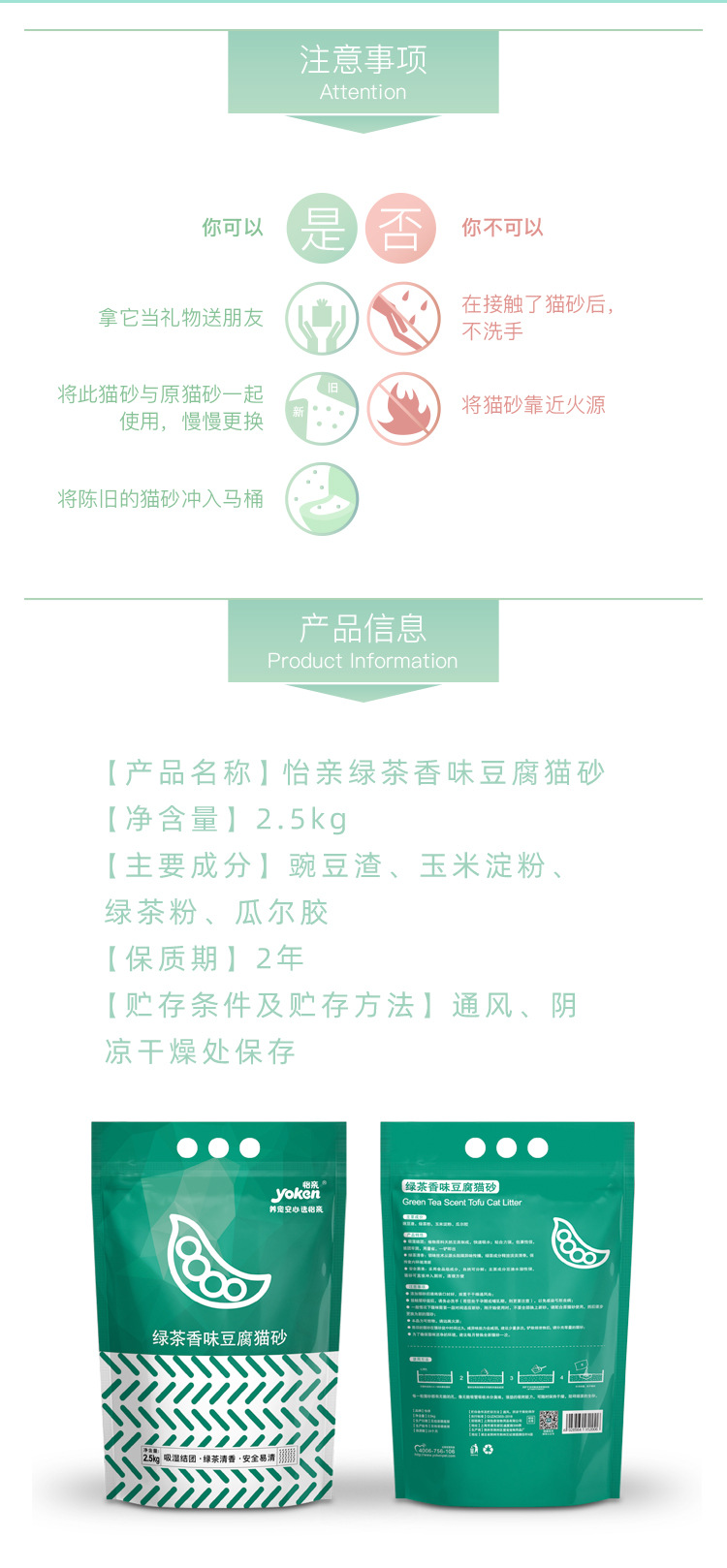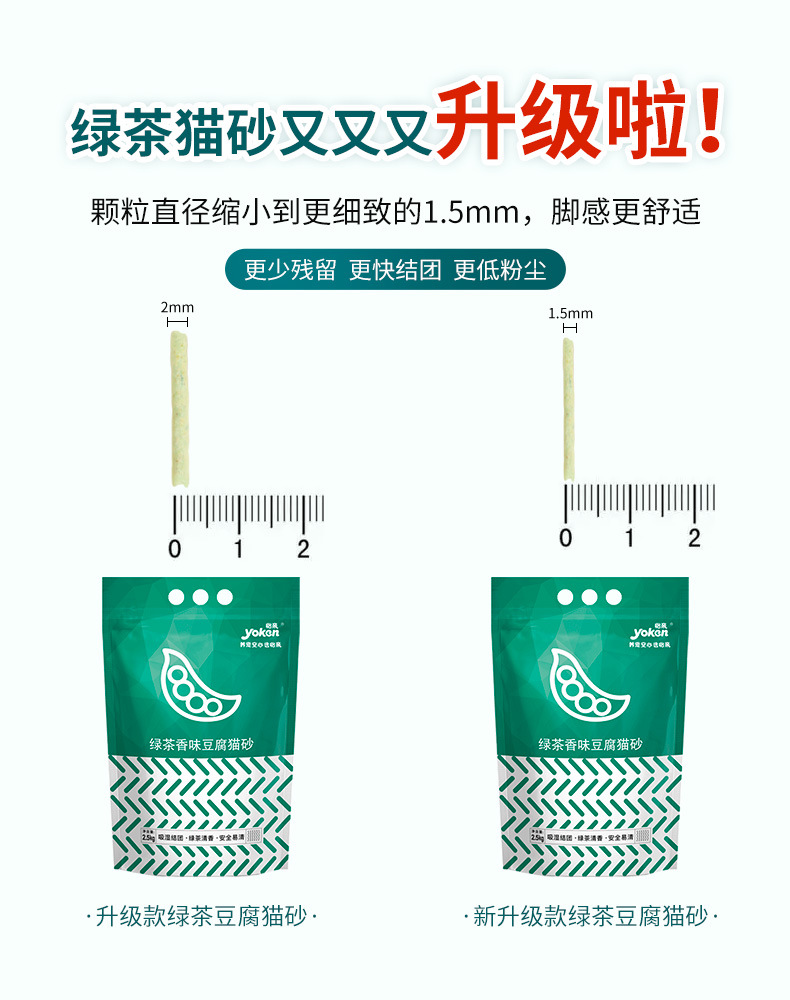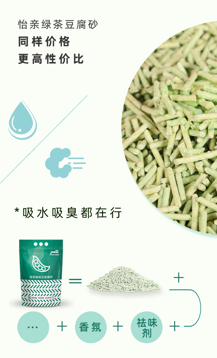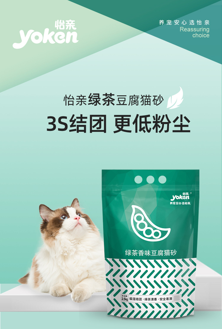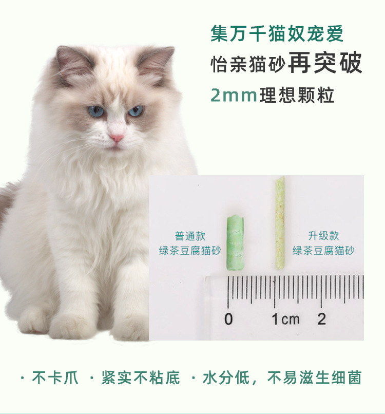 이친 녹차 두부 고양이 모래 빠른 응고 탈취 저먼지 2.5kg 화장실에 쓸 수 있는 새 포장 탈취 및 악취 억제