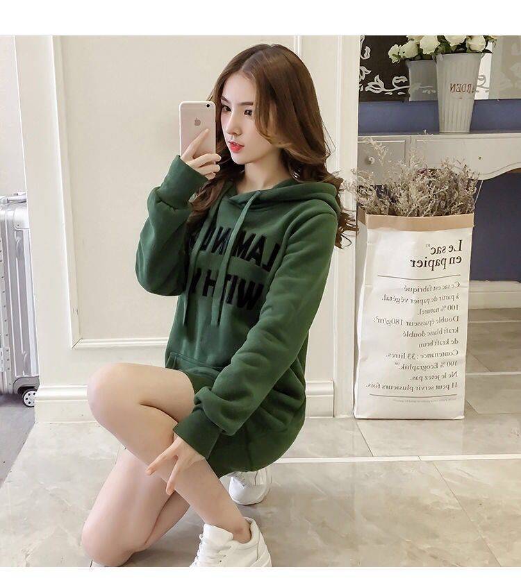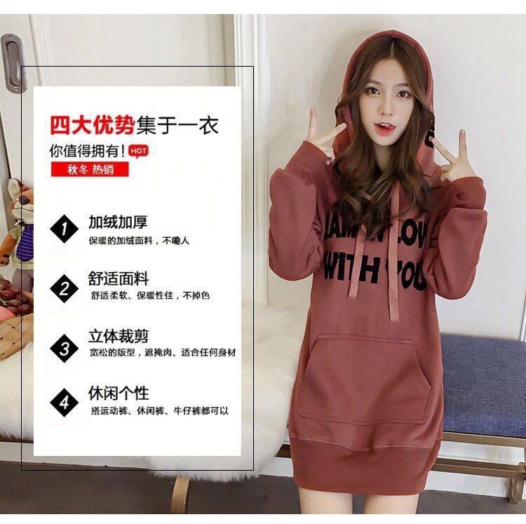여성을위한 국경 간 동남 아시아 후드 티셔츠 2025 겨울 새로운 스타일 중간 길이 벨벳 두꺼운 느슨한 문자 후드스토어 가기