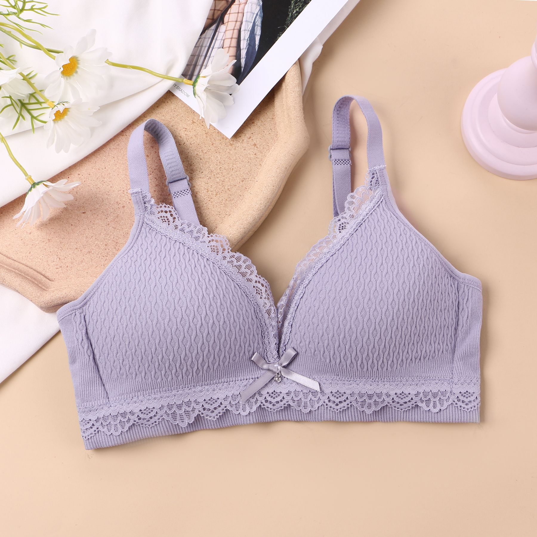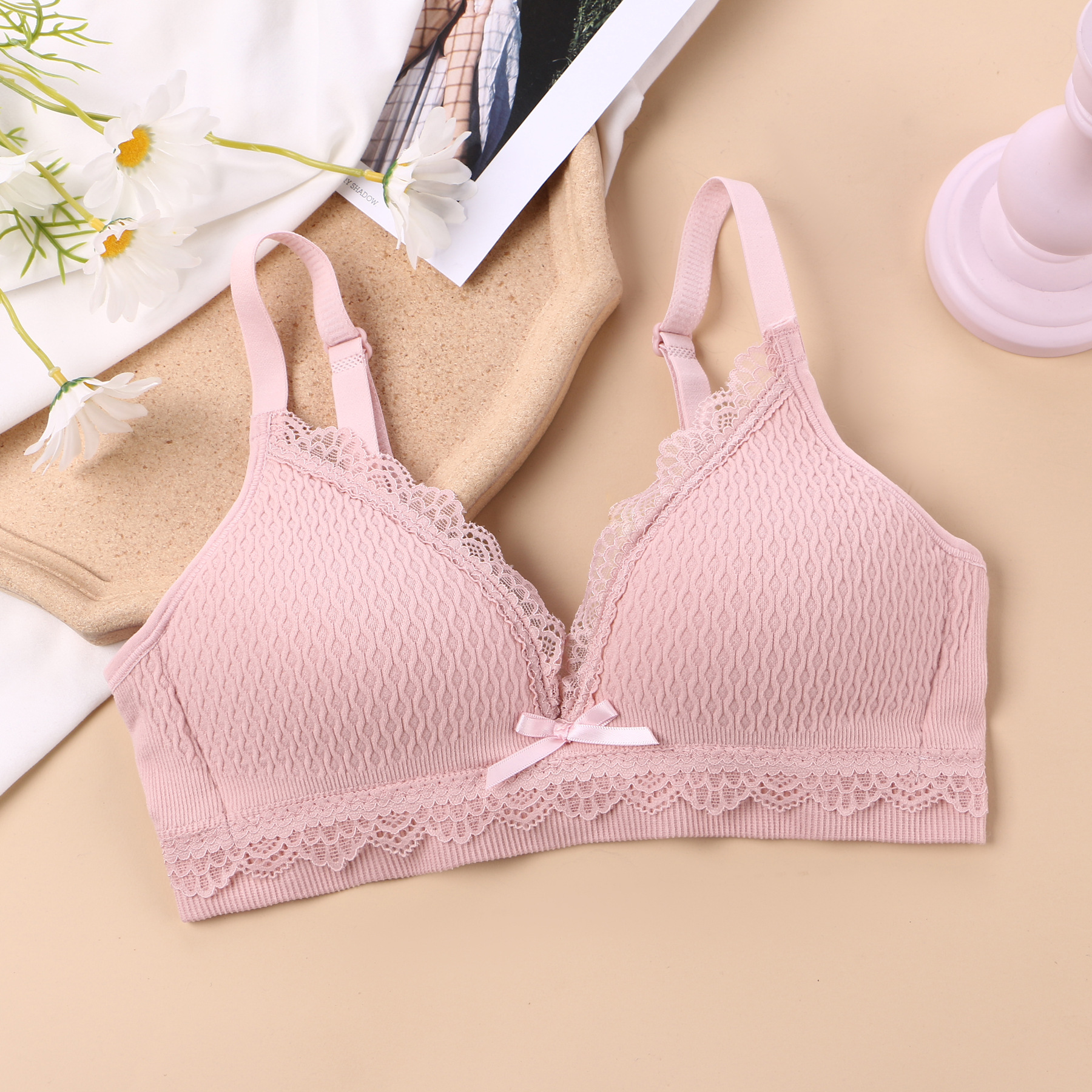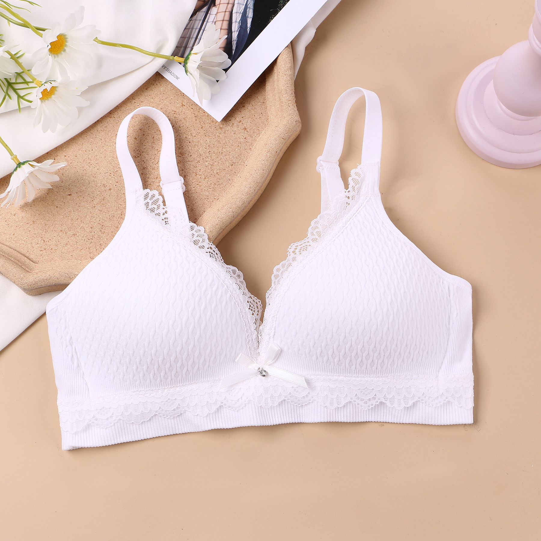 여아 속옷 여성용 브라 스틸 링이없는 삼각형 컵 브라 레이스 고등학교 여아 학생 고정 컵 브라