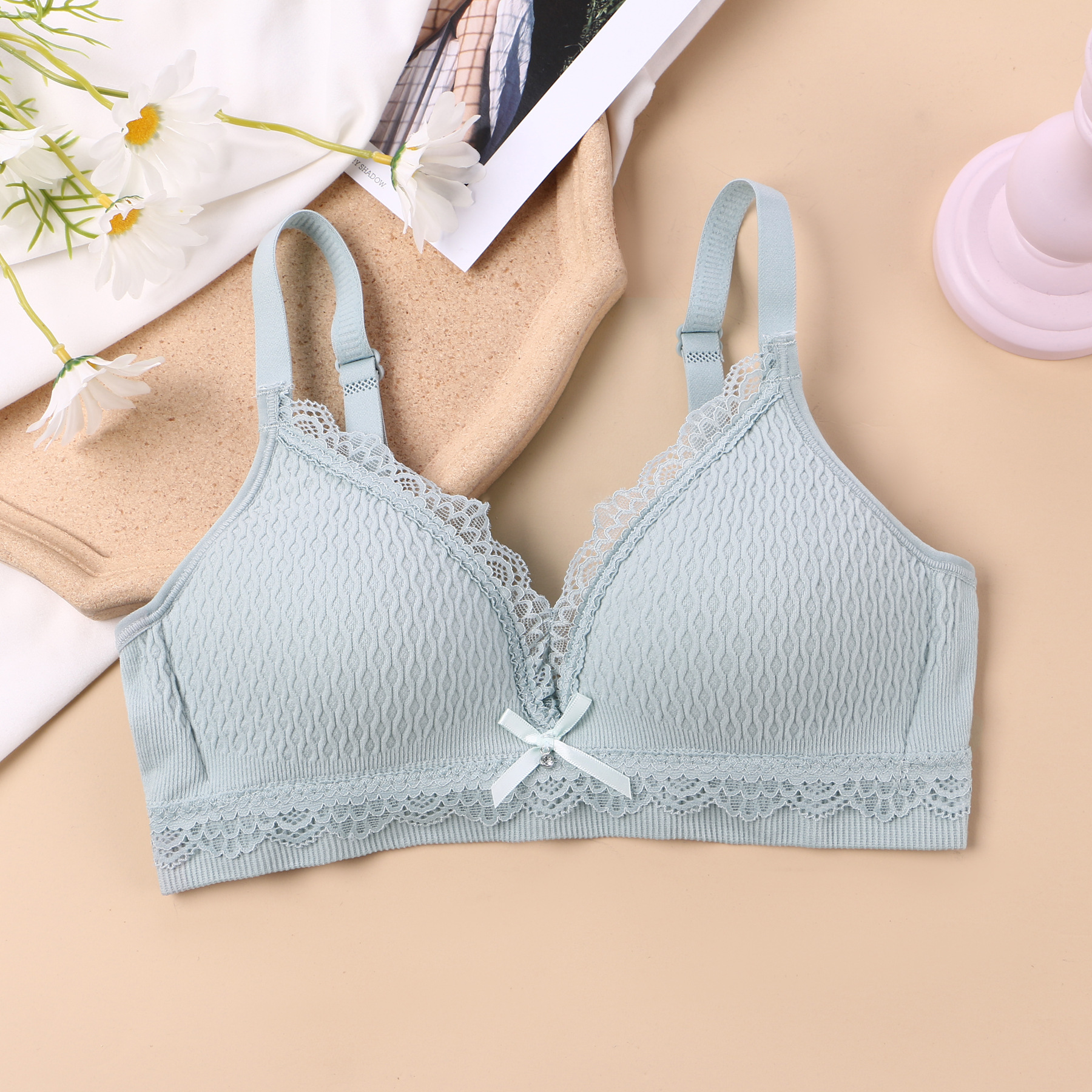 여아 속옷 여성용 브라 스틸 링이없는 삼각형 컵 브라 레이스 고등학교 여아 학생 고정 컵 브라스토어 가기