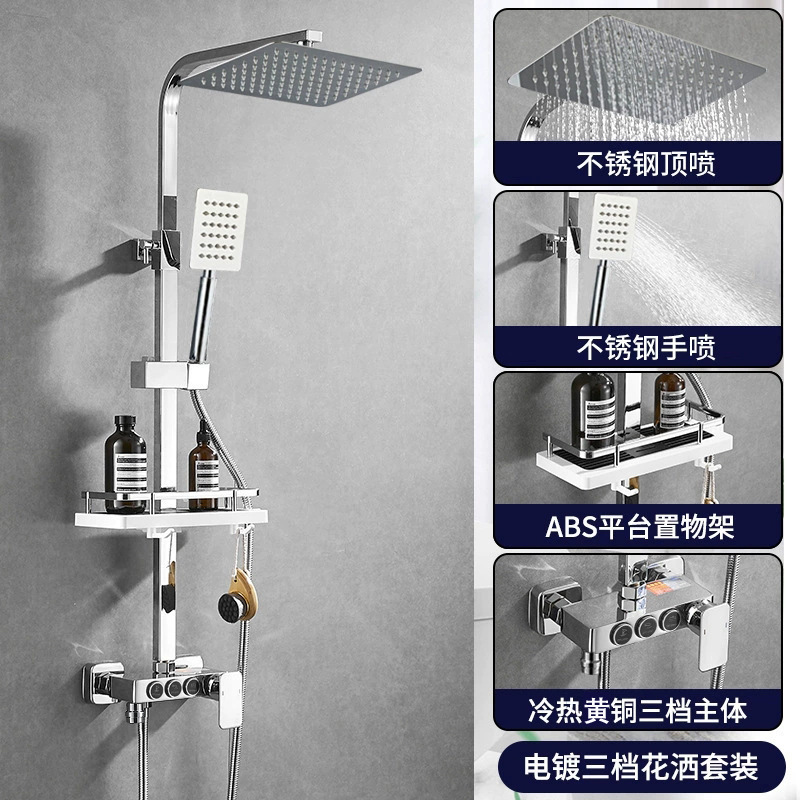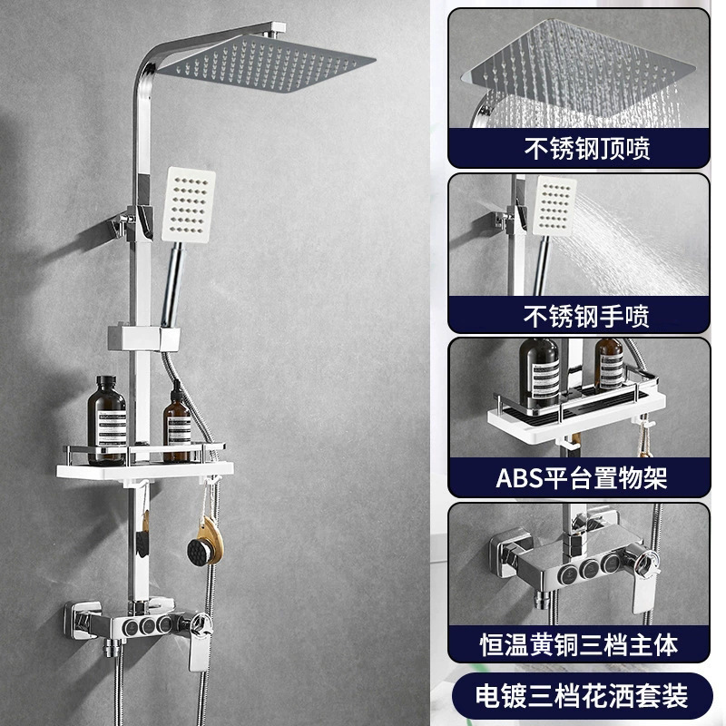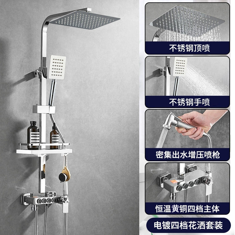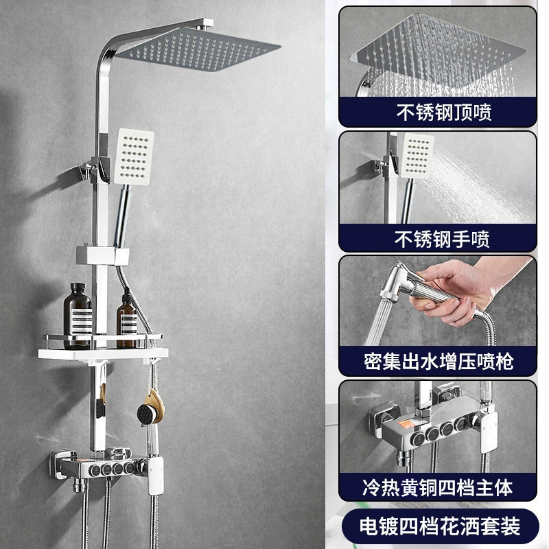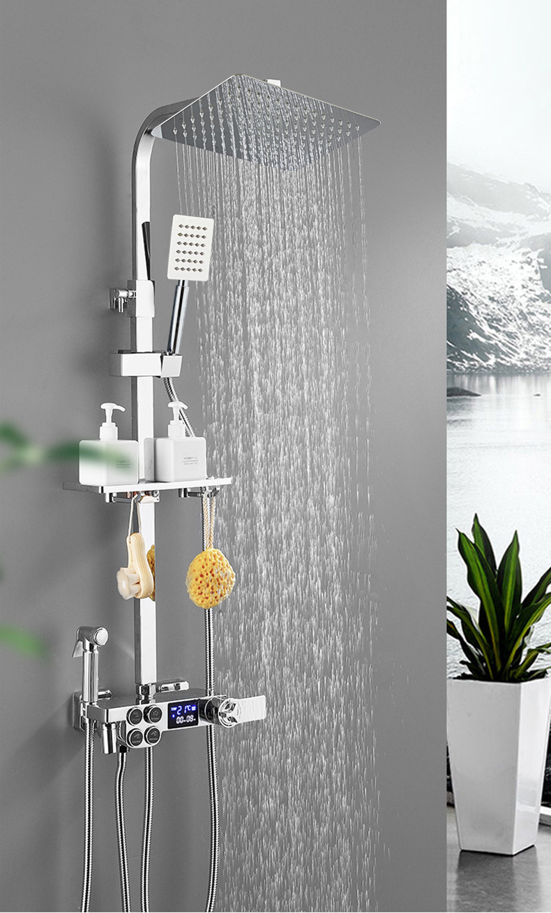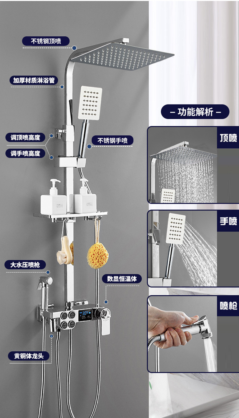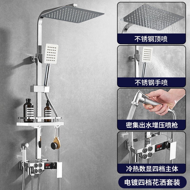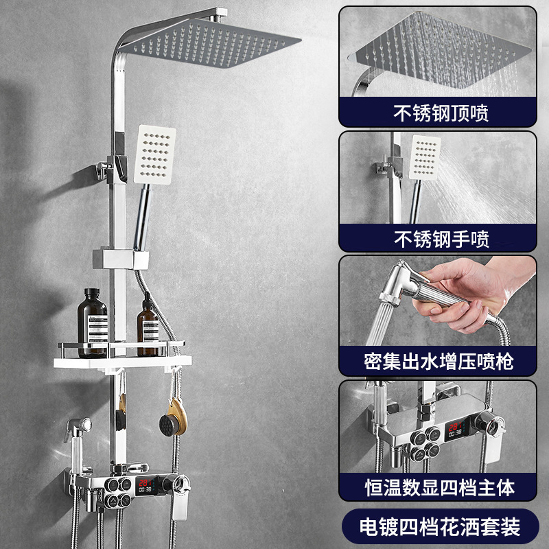 가정용 온도조절 샤워기 세트 크롬 도금 버튼 디지털 디스플레이 스마트 온도조절 황동 가압 대형 탑 스프레이 샤워기
