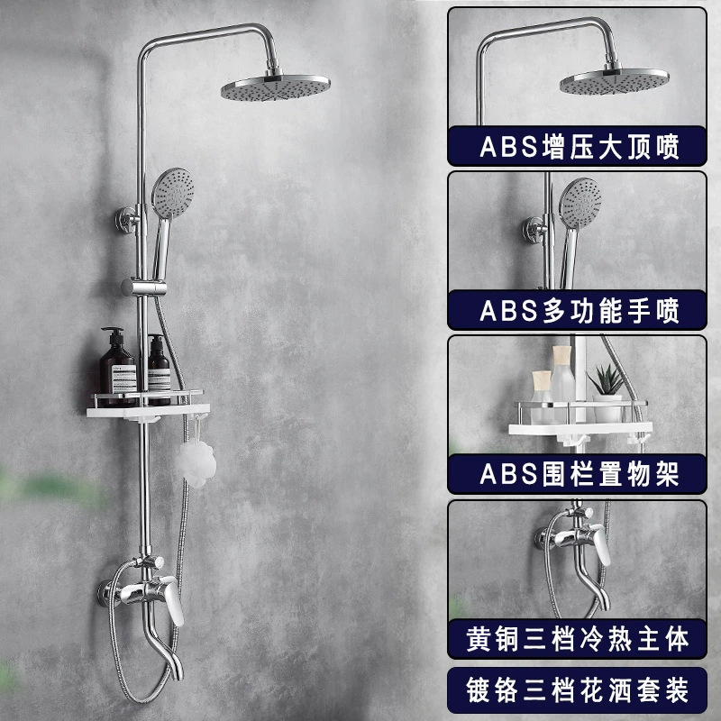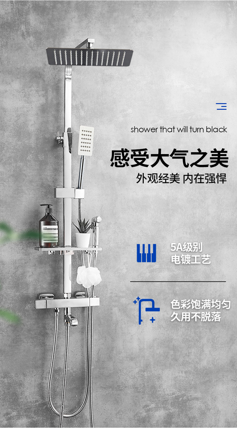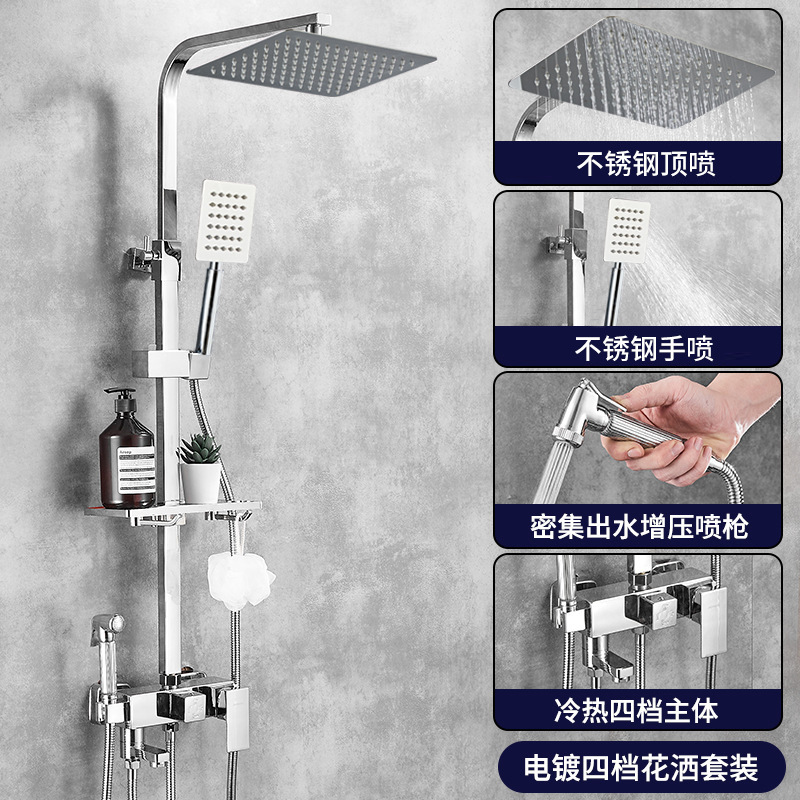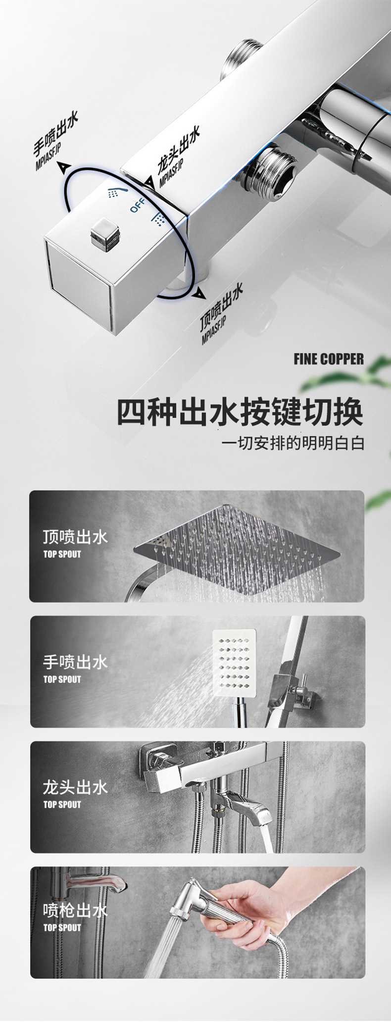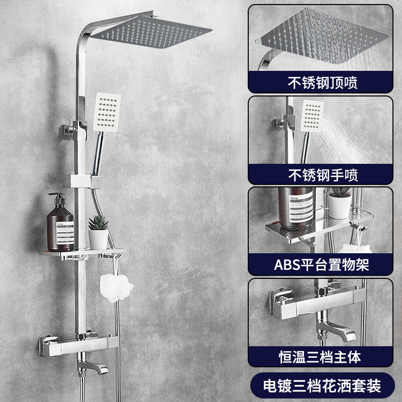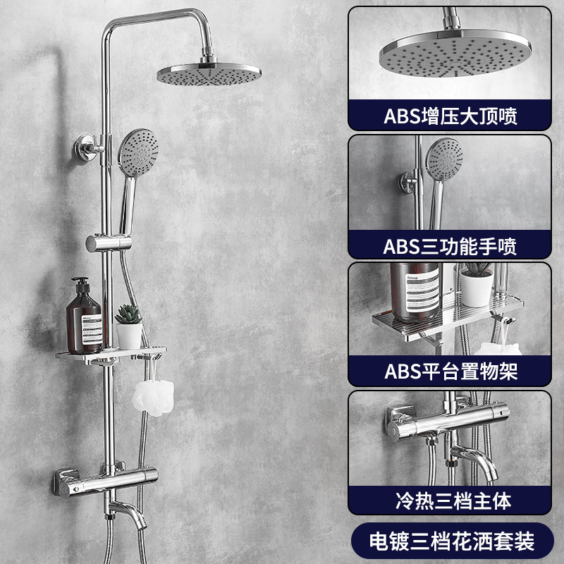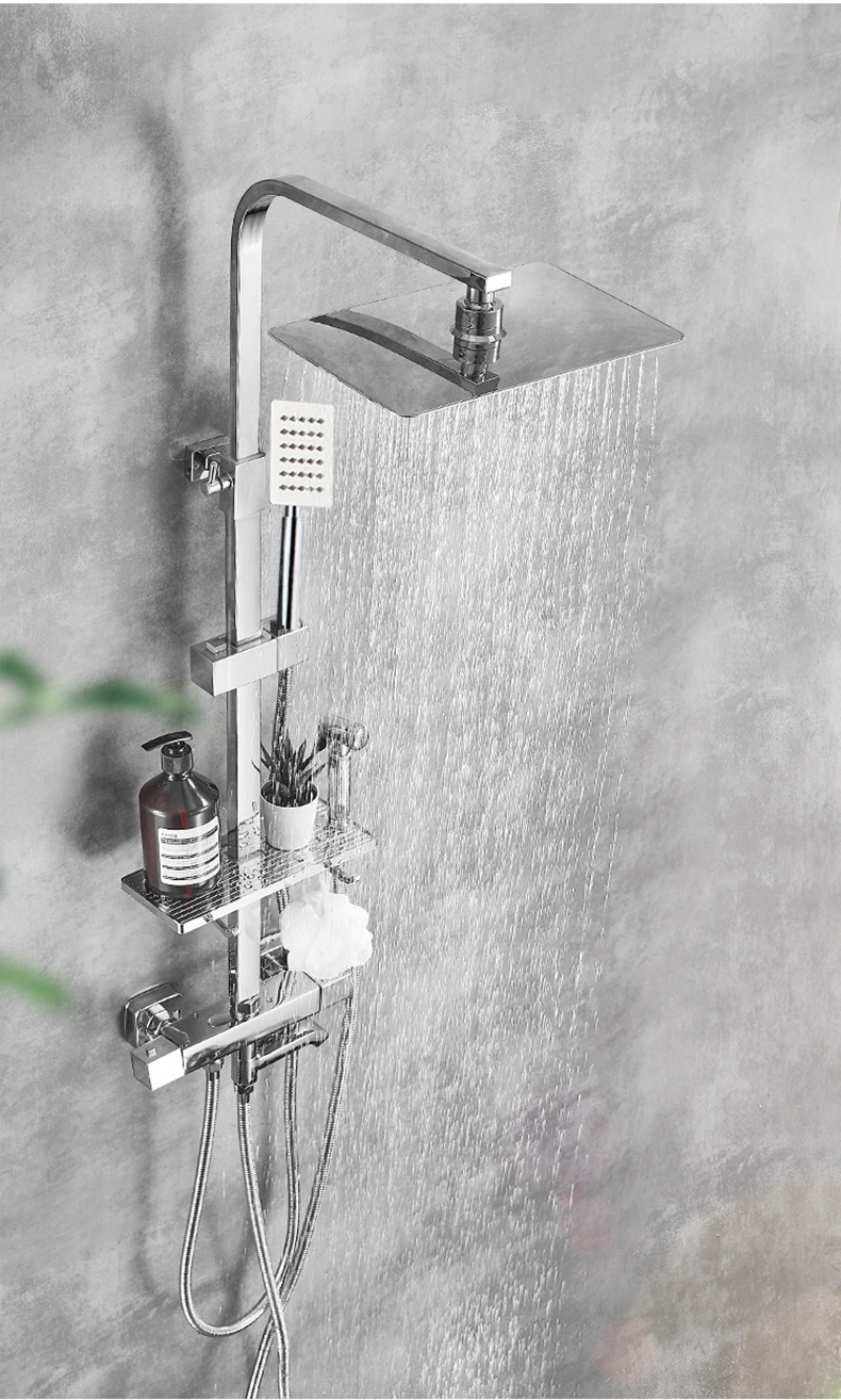 가정용 온도조절 샤워기 세트 크롬 도금 버튼 디지털 디스플레이 스마트 온도조절 황동 가압 대형 탑 스프레이 샤워기