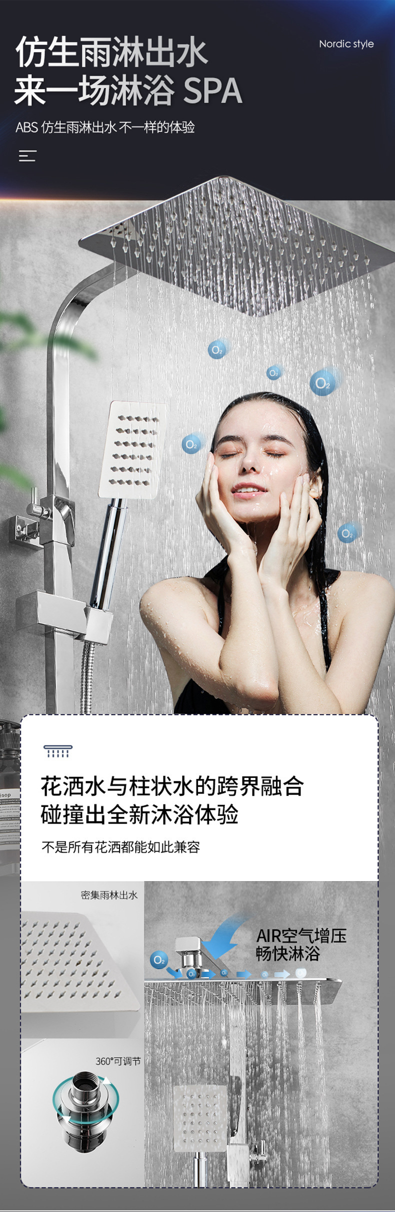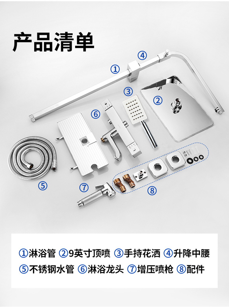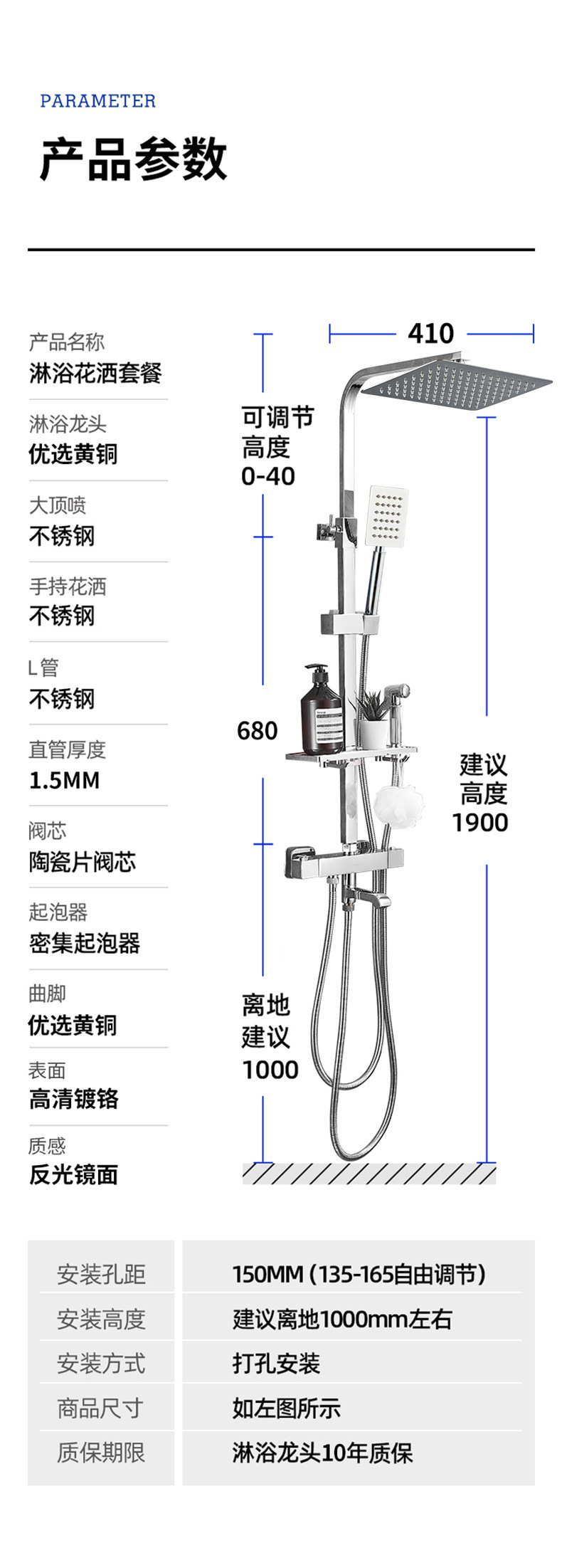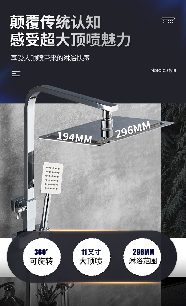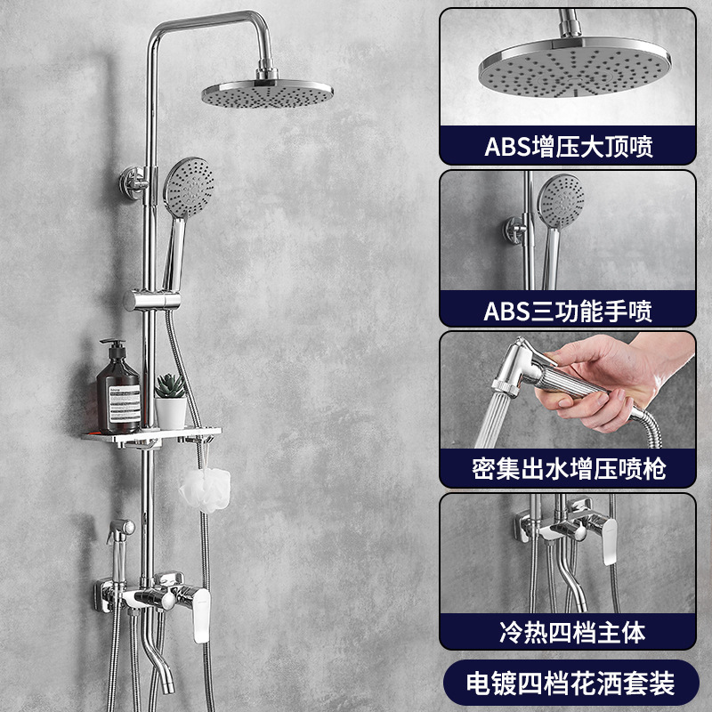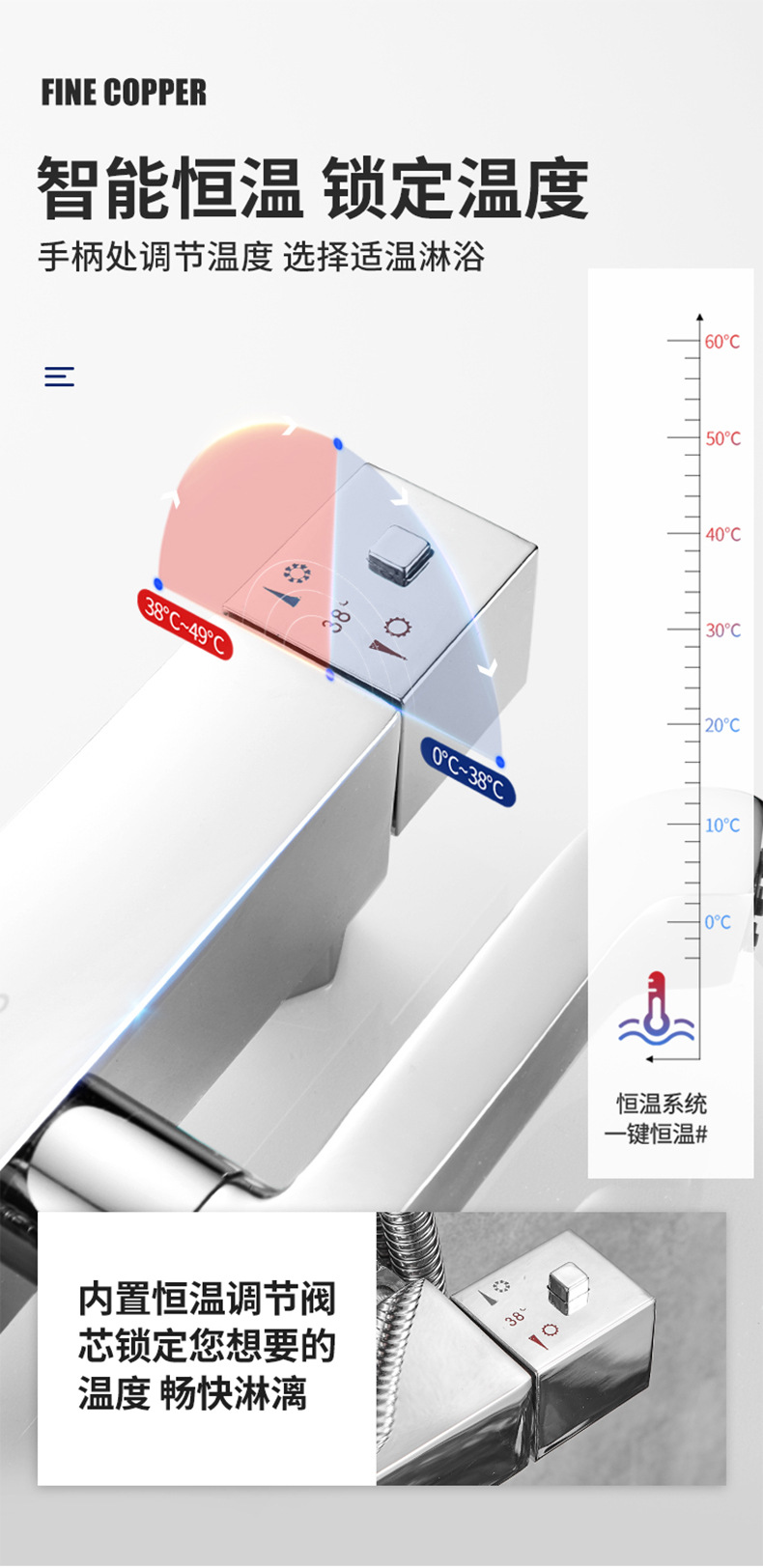 가정용 온도조절 샤워기 세트 크롬 도금 버튼 디지털 디스플레이 스마트 온도조절 황동 가압 대형 탑 스프레이 샤워기